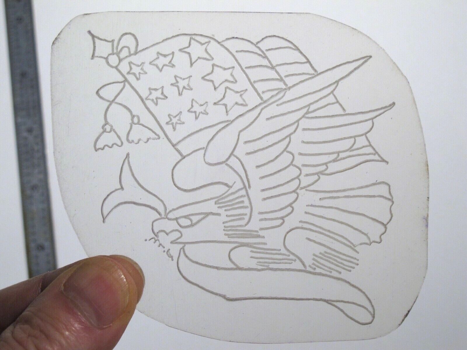 как выглядит vtg 1960s 1970s Tattoo acetate stencil Eagle Flag Banner signed EA3 фото