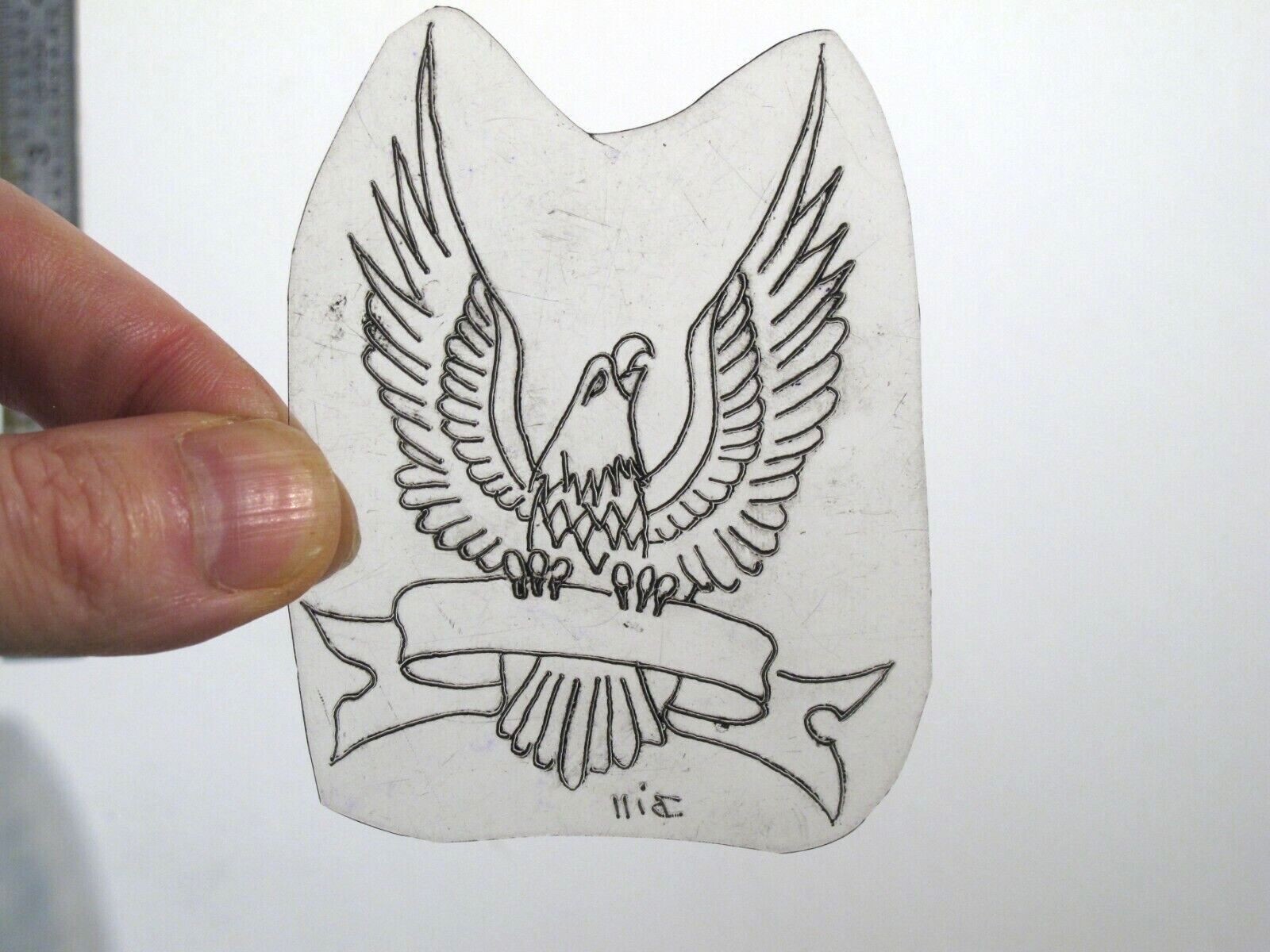 vtg 1960s 1970s Tattoo acetate stencil Eagle and Banner Dark signed EA3