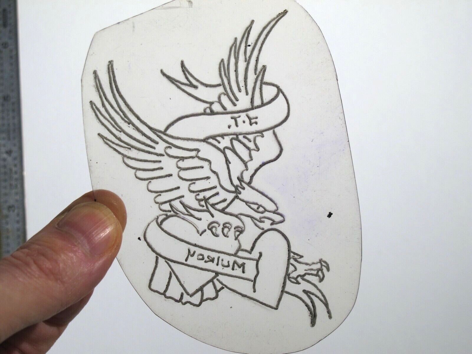 vtg 1960s 1970s Tattoo acetate stencil Eagle Banner Hearts signed EA3