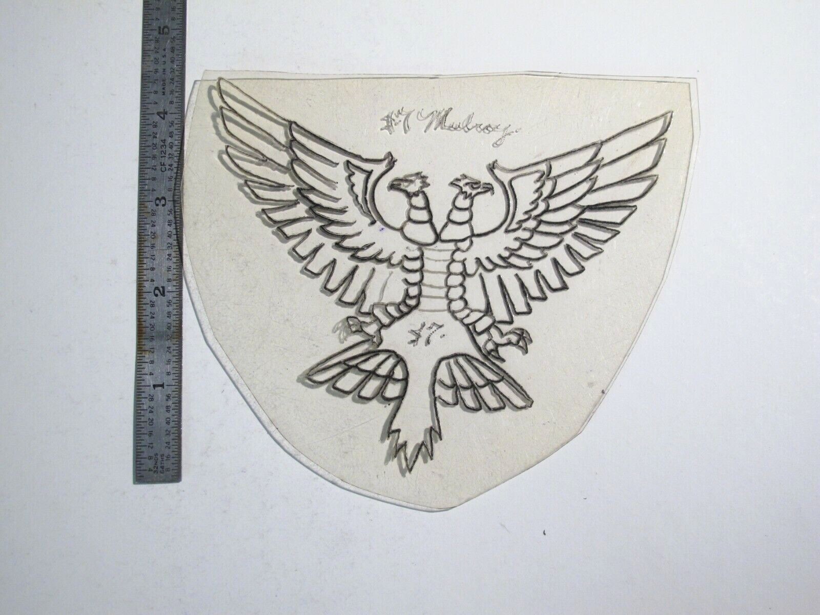 vtg 1960s 1970s Tattoo acetate stencil Mythical Two Head Phoenix signed BR4