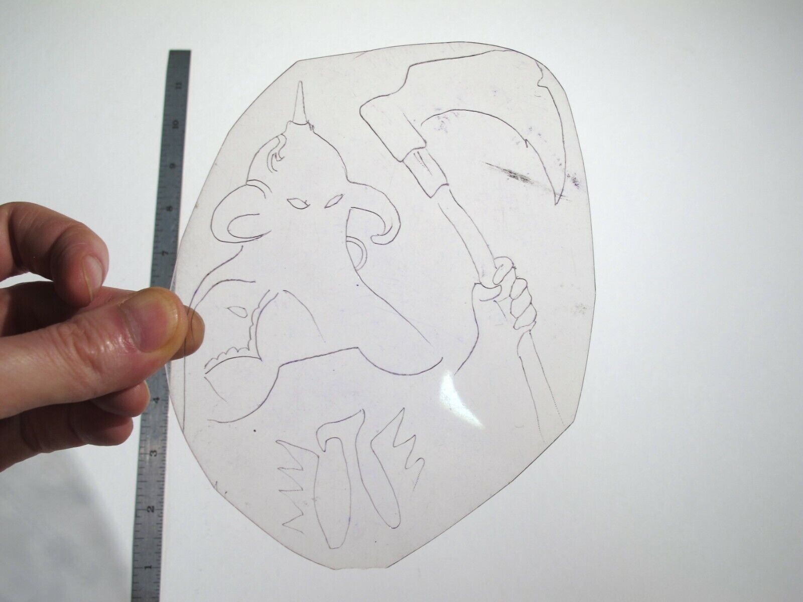 vtg 1960s 1970s Tattoo Flash acetate stencil Executioner Axe and Shield REP2