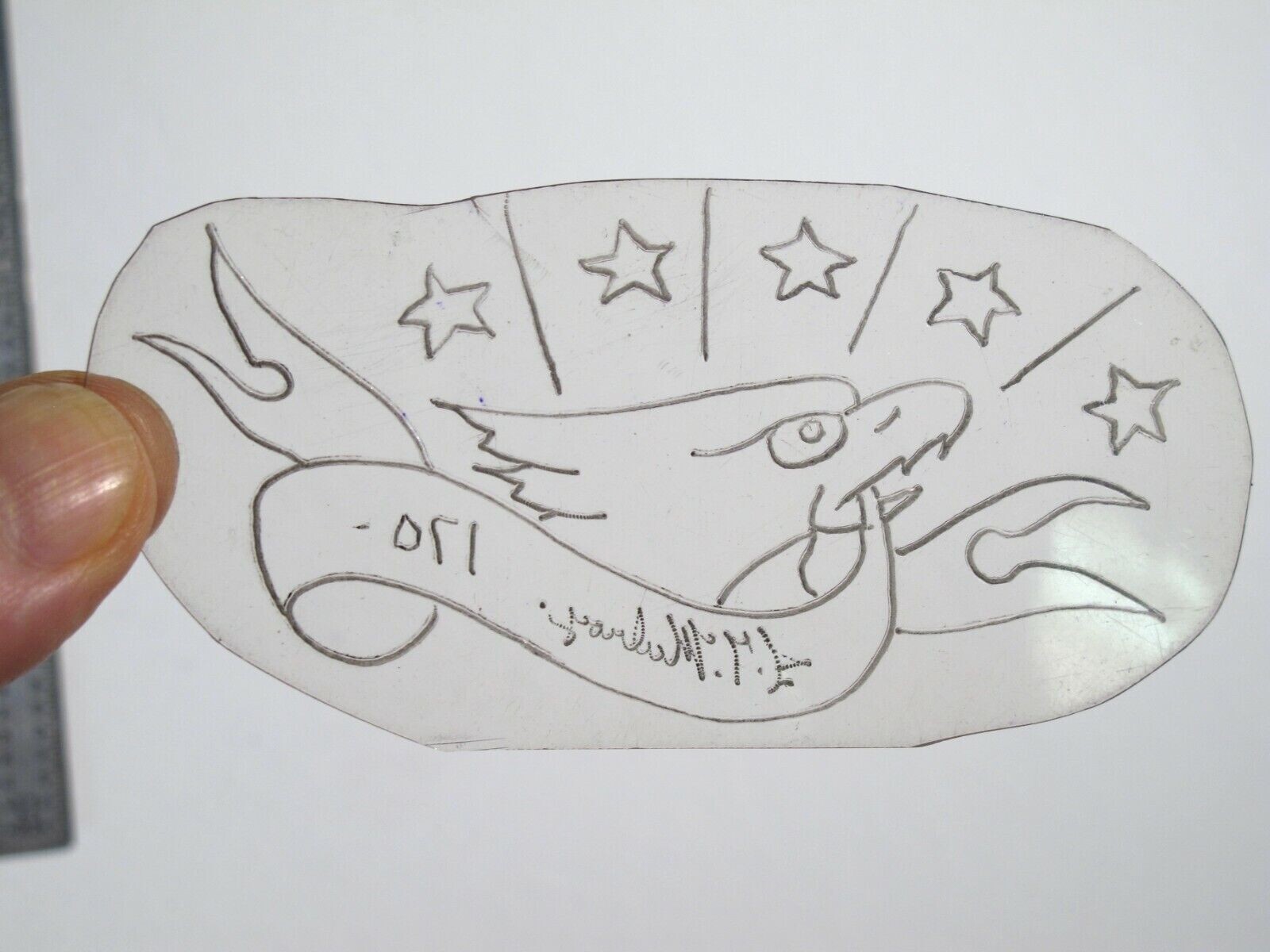vtg 1960s 1970s Tattoo Flash acetate stencil Eagle and Stars Signed MIL2
