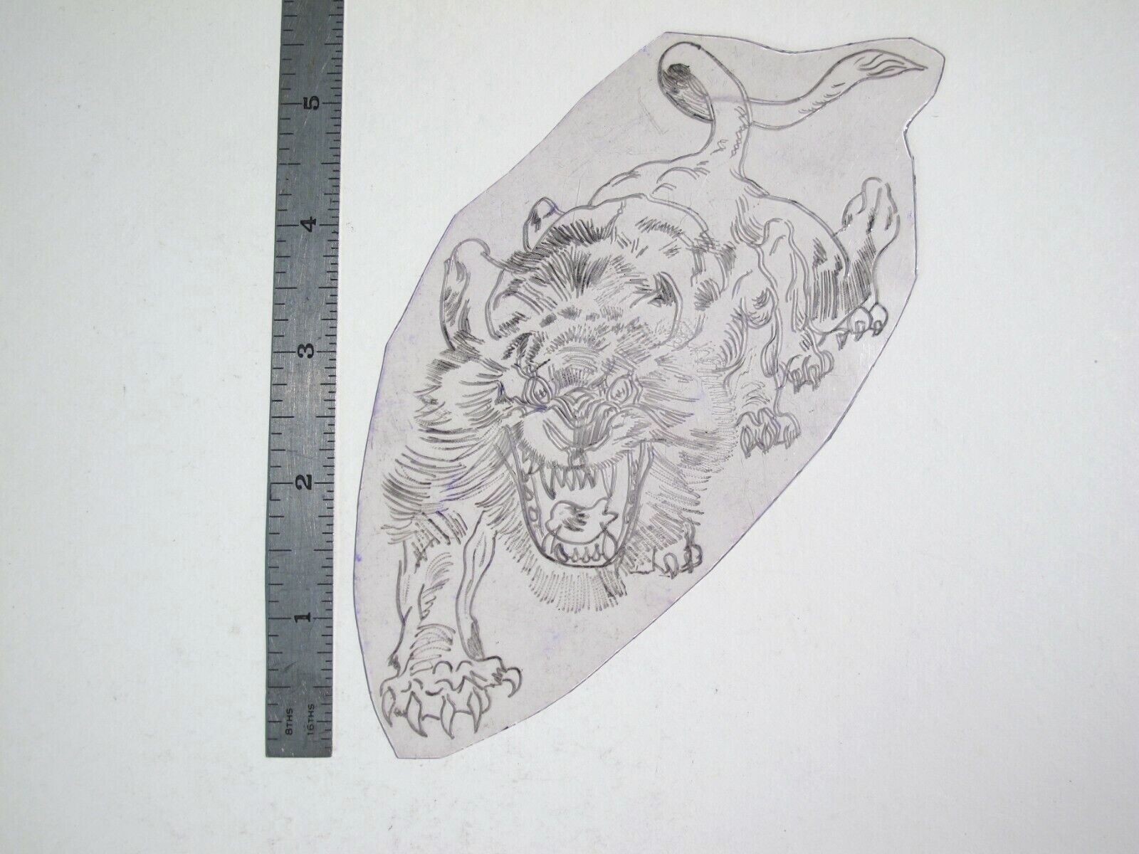 vtg 1960s 1970s Tattoo Flash acetate stencil Ferocious Lion Stalking LT2