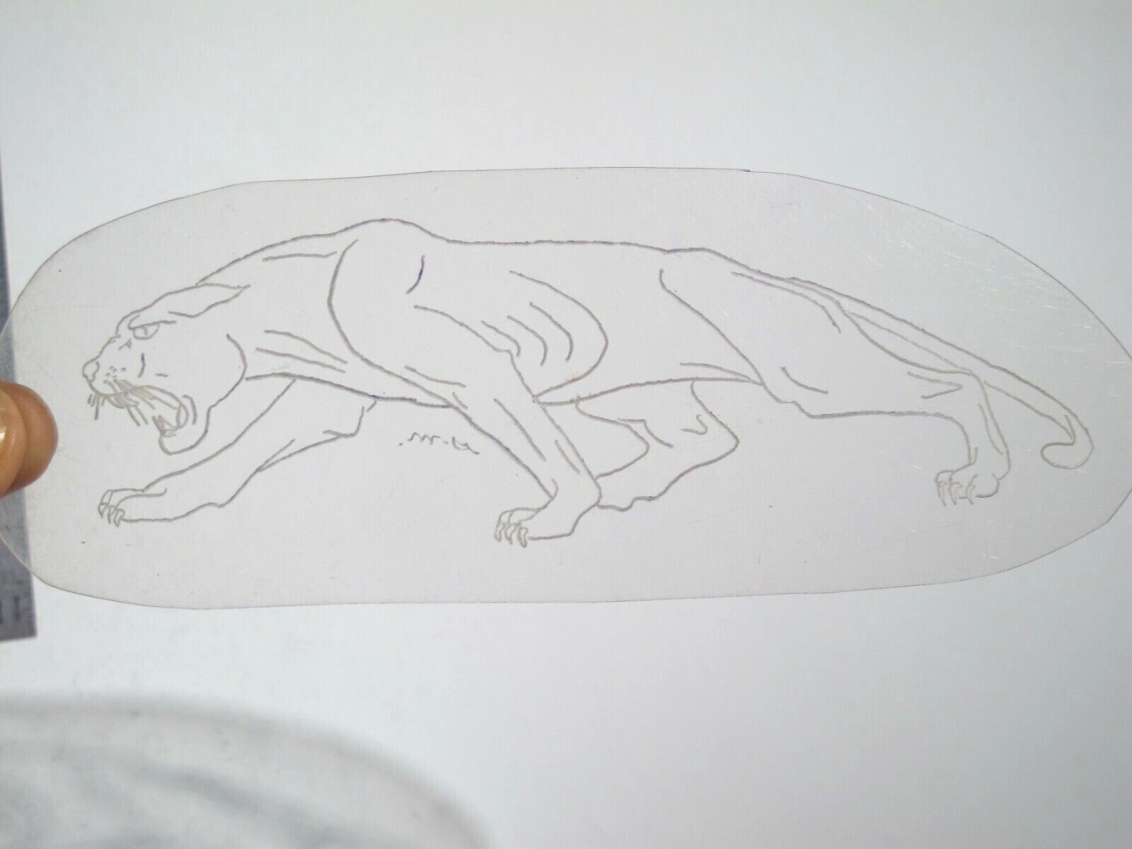 vtg 1960s 1970s Tattoo Flash acetate stencil Stalking Cat Profile signed LT2