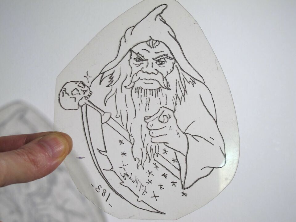 vtg 1960s 1970s Tattoo Flash acetate stencil Pointing Wizard signed WIZ