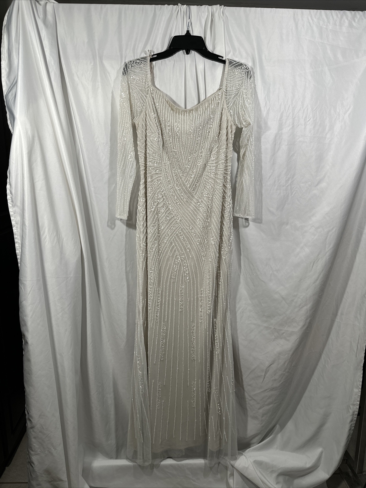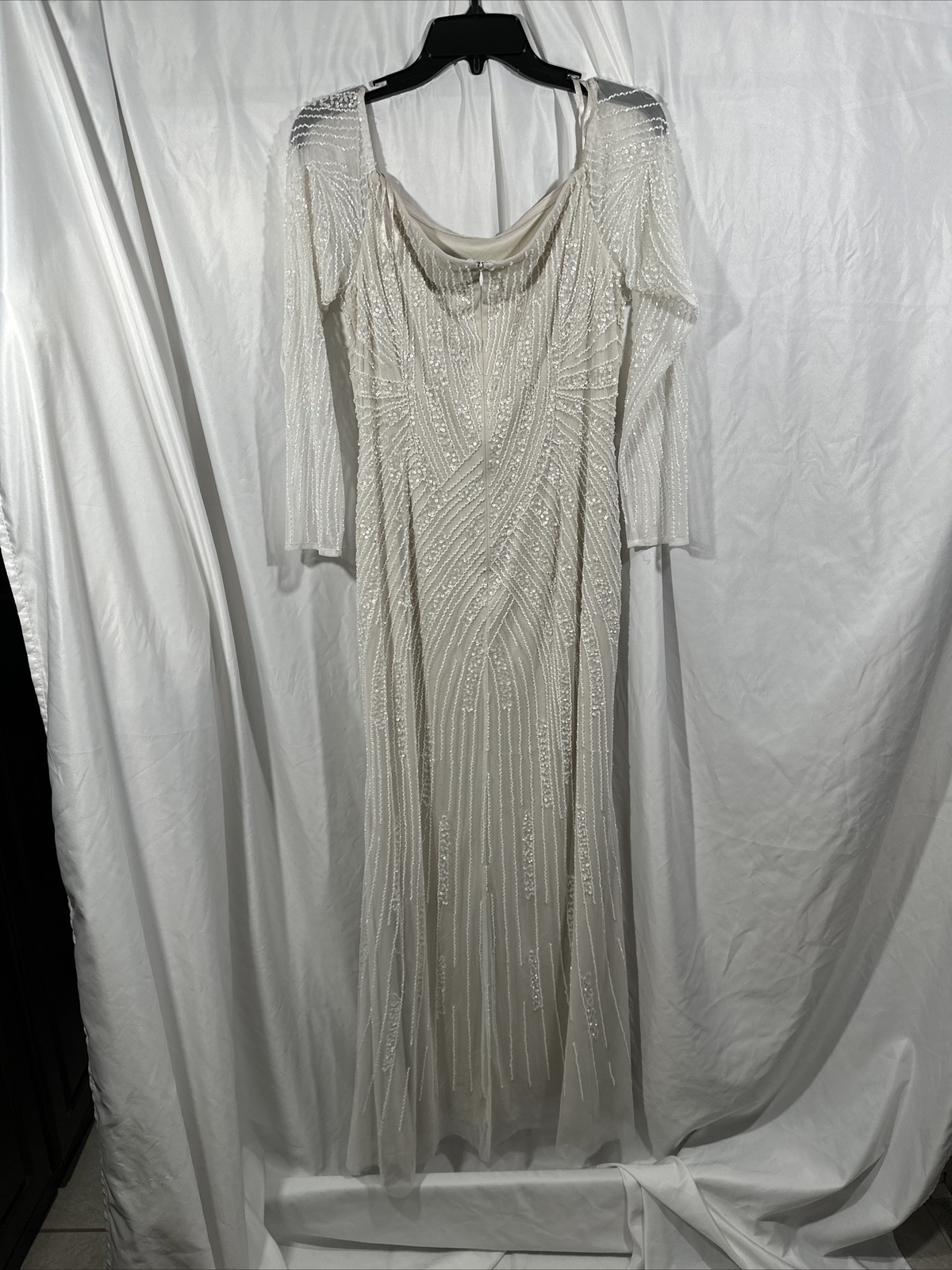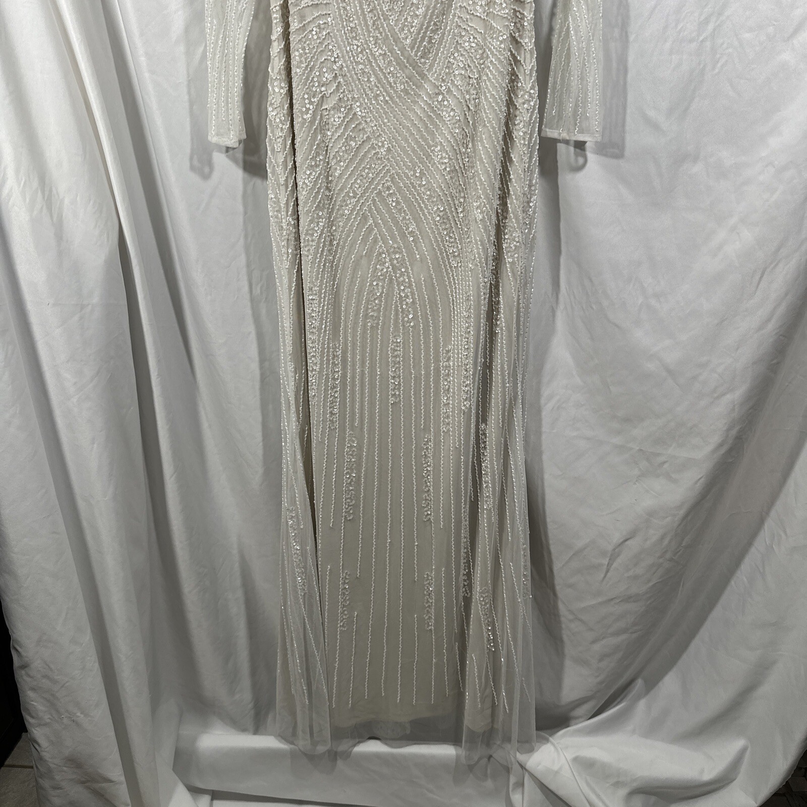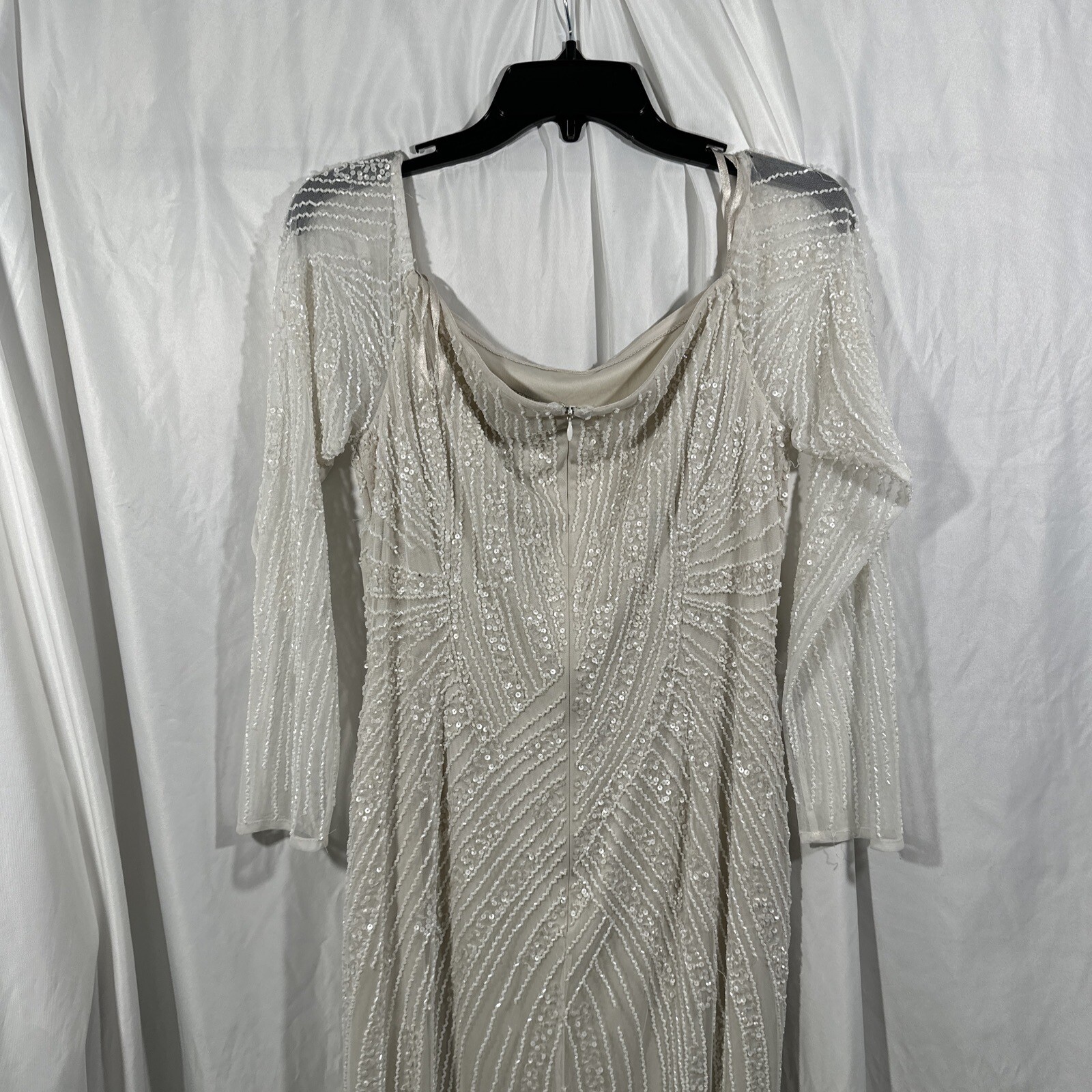 как выглядит NEW ADRIANNA PAPELL 12 Long Sleeve Off Shoulder Beaded Mermaid Gown Q401 фото