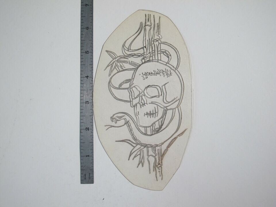 vtg 1960s 1970s Tattoo Flash acetate stencil Bamboo Skull Snake signed SN2