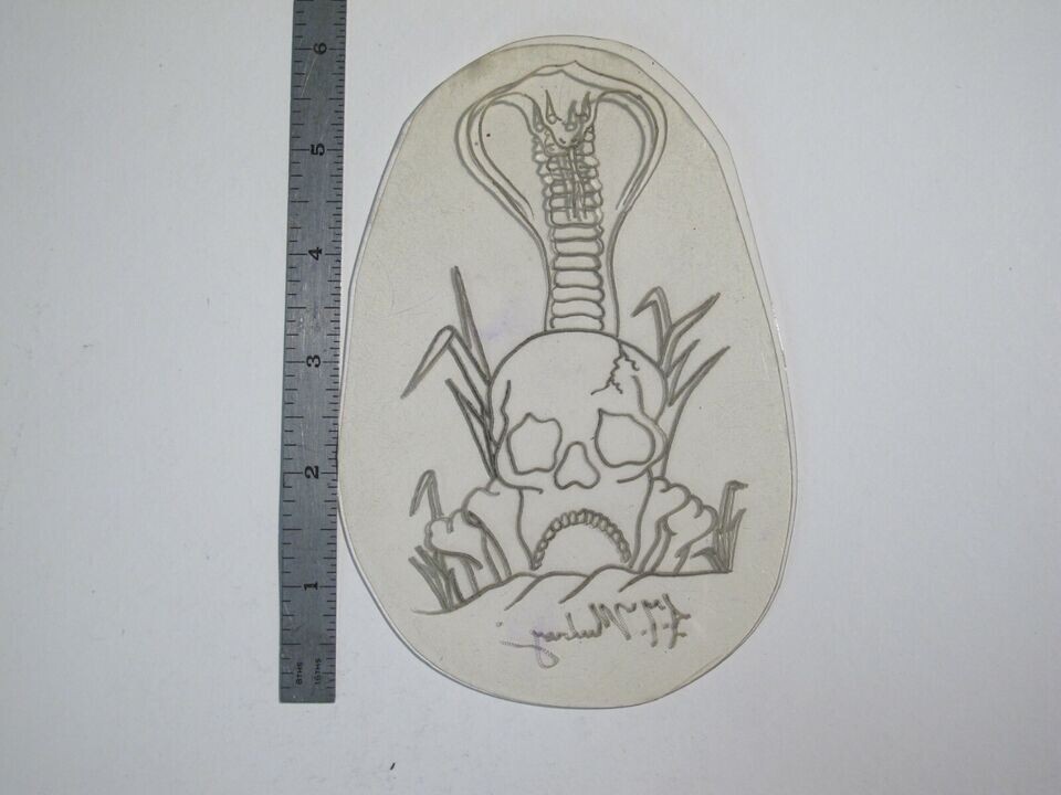vtg 1960s 1970s Tattoo Flash acetate stencil Skull Snake Grass Bones signed SN2