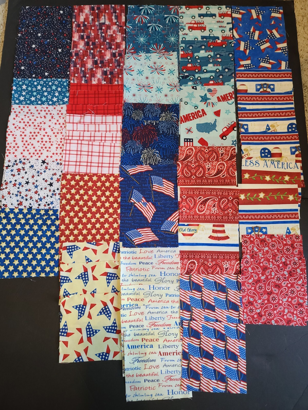 как выглядит Red White Blue Patriotic Quilt Craft Fabric 5 inch Squares Lot of 72 фото