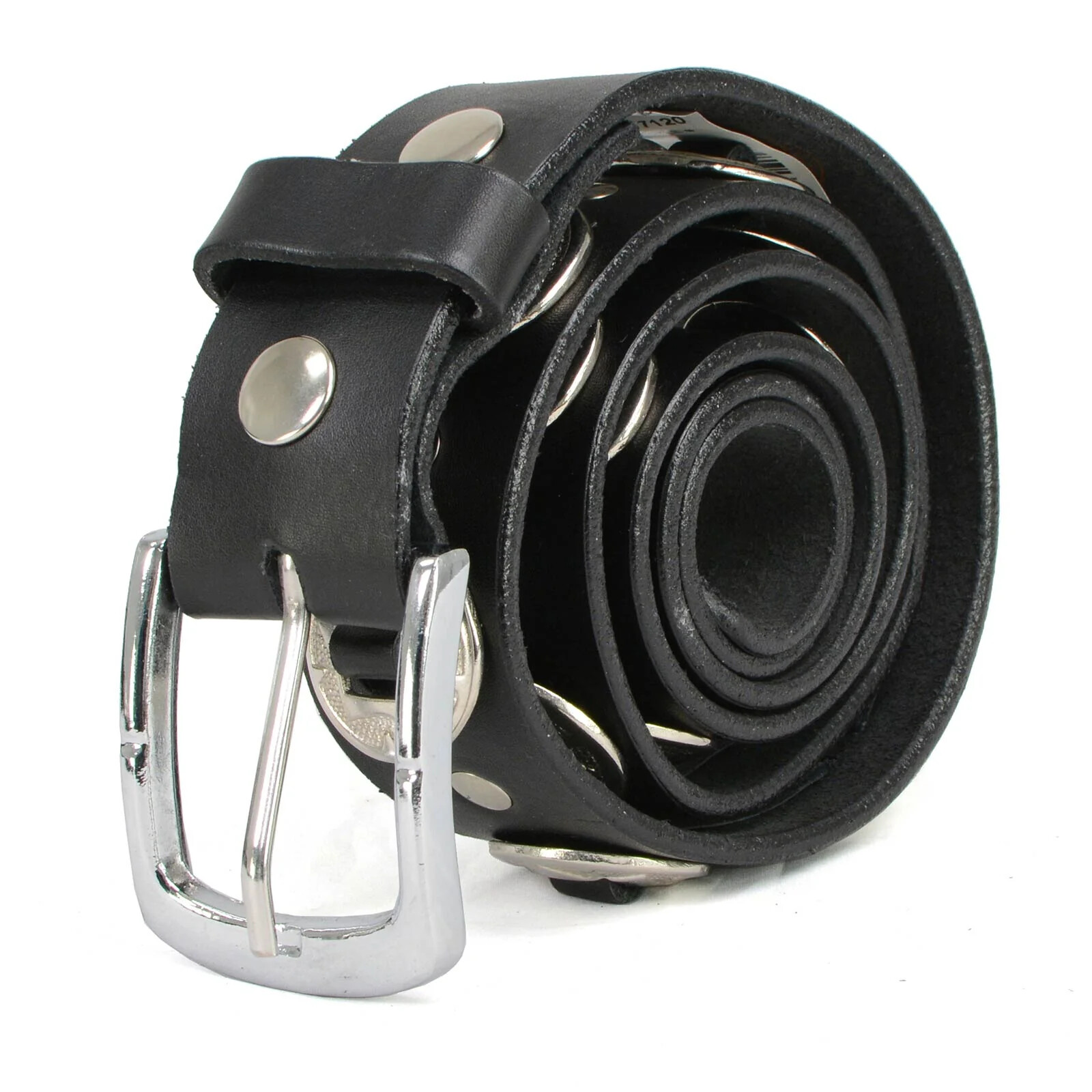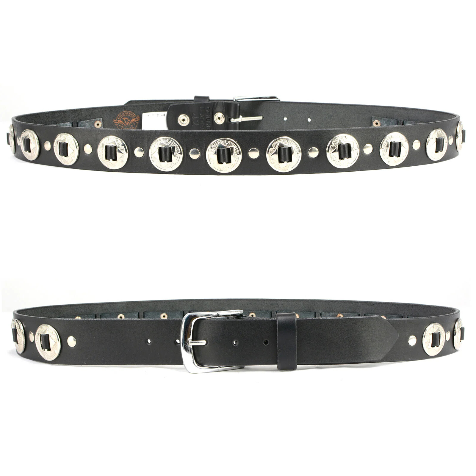 Men's Chrome Conchos 7120 Black Genuine Leather Belt W/ Interchangeable Buckle