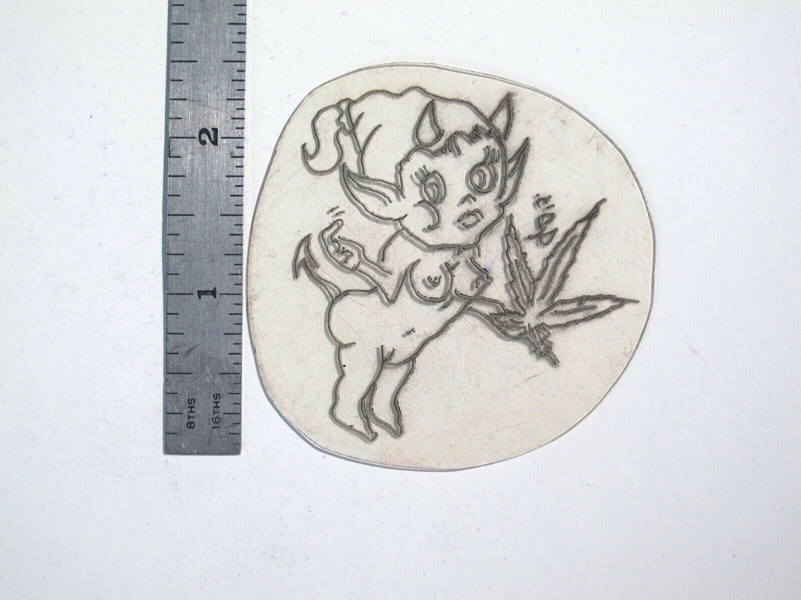 как выглядит vtg 1960s 70s Tattoo acetate stencil Pop Culture Devil Girl Elf Weed signed MX фото