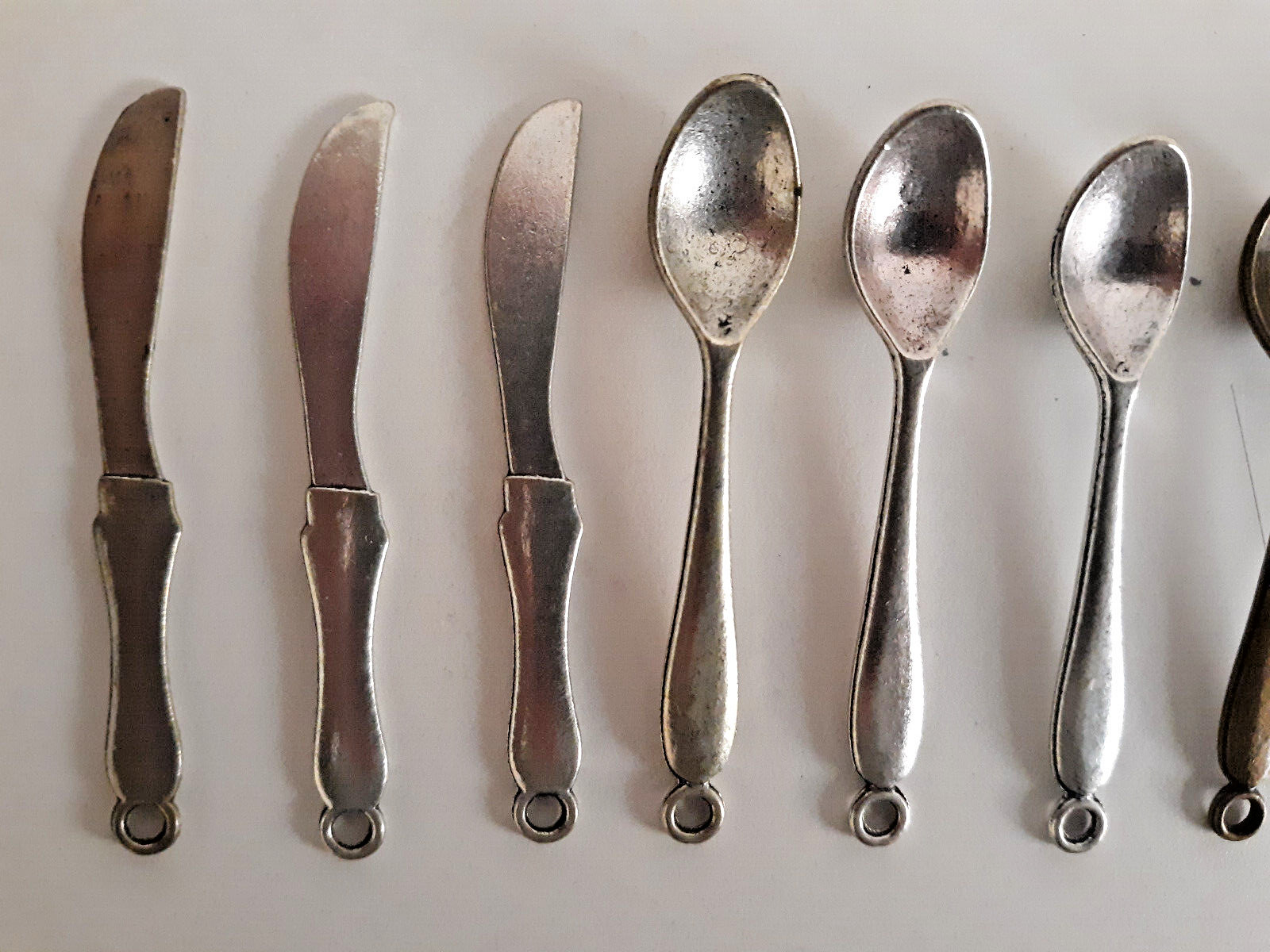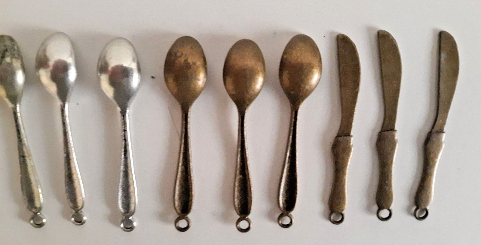 MINIATURE TOY SILVERWARE FLATWARE 6 SPOONS,6 KNIVES, EYED ENDS, UNBRANDED