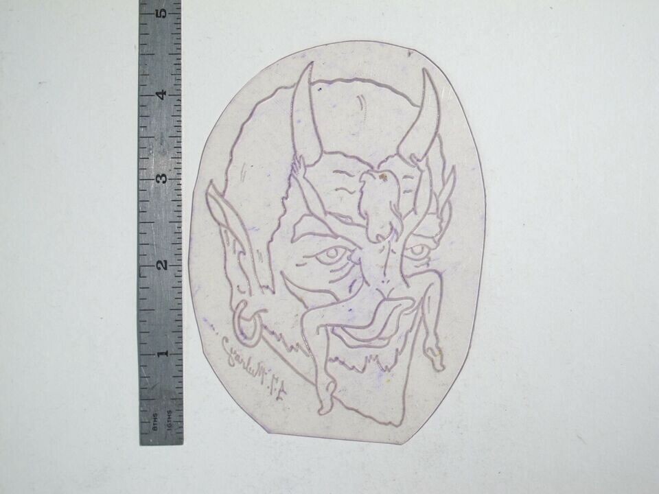 vtg 1960s 1970s Tattoo Flash acetate stencil P-ssy Eating Devil signed v2 DD1