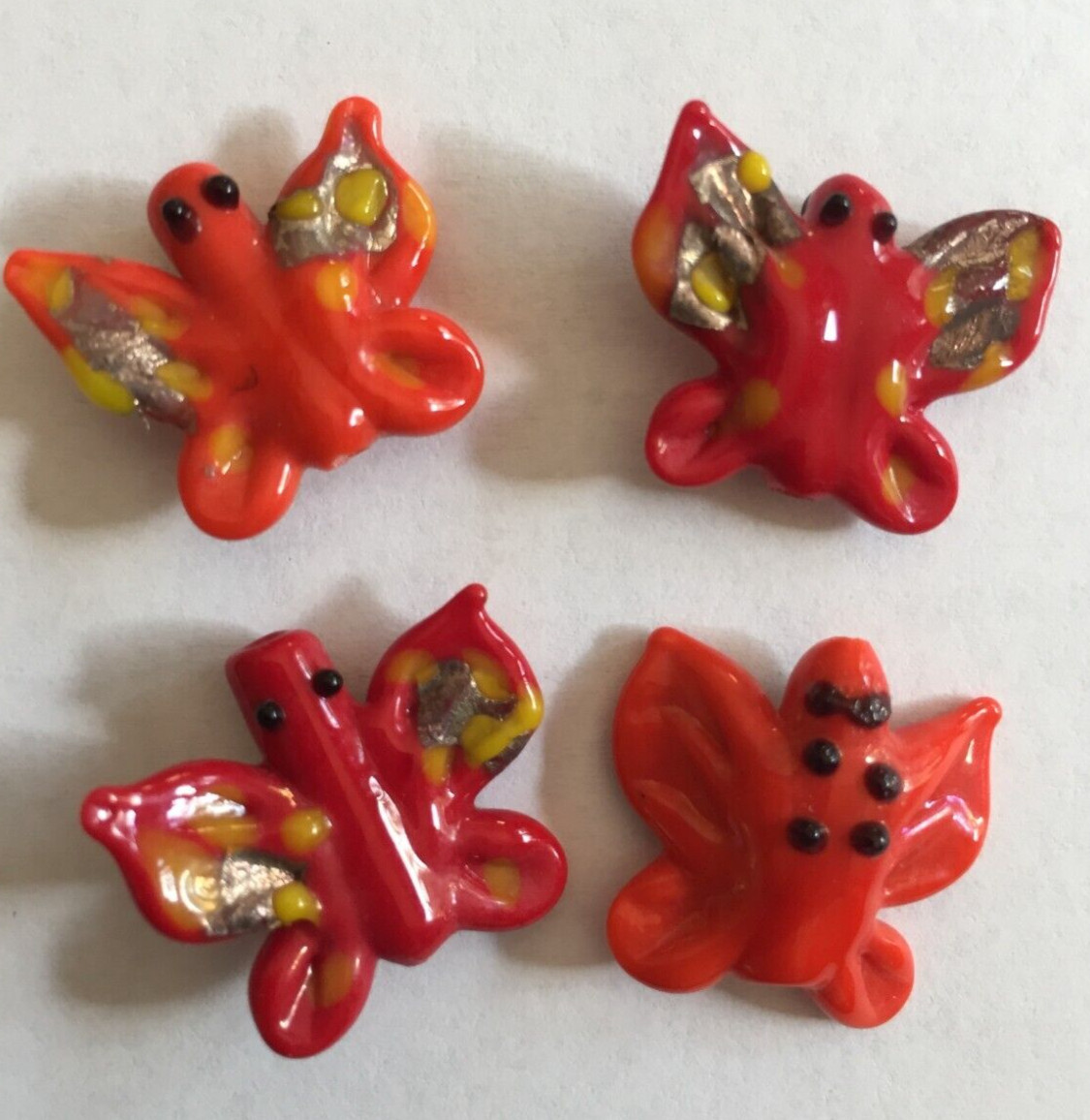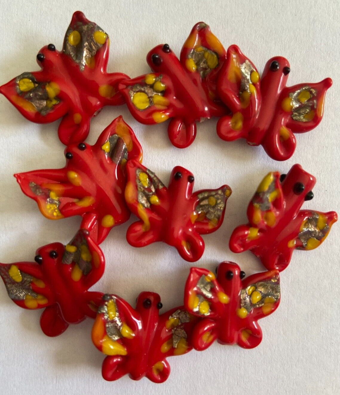 как выглядит 75 Handmade Lampwork Glass Butterfly Beads Jewelry Red Orange Novelty Bead Lot фото
