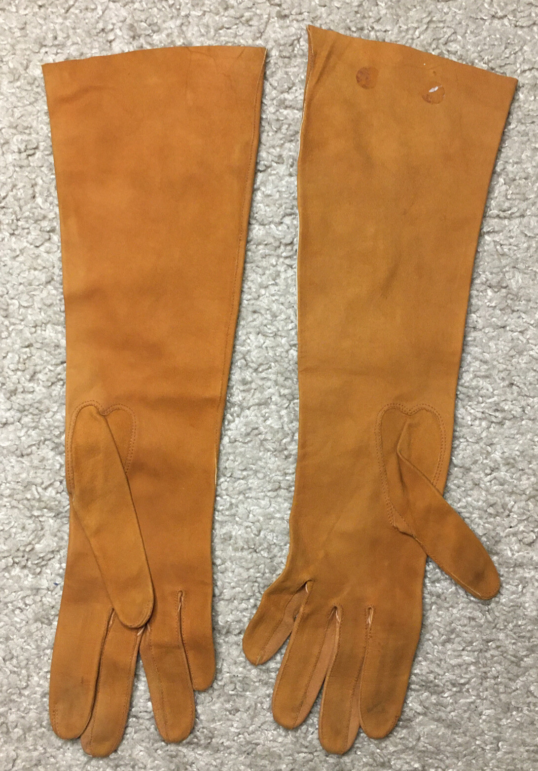 14 Inch Long Brown Opera Gloves Made In Paris Size 6 1/2