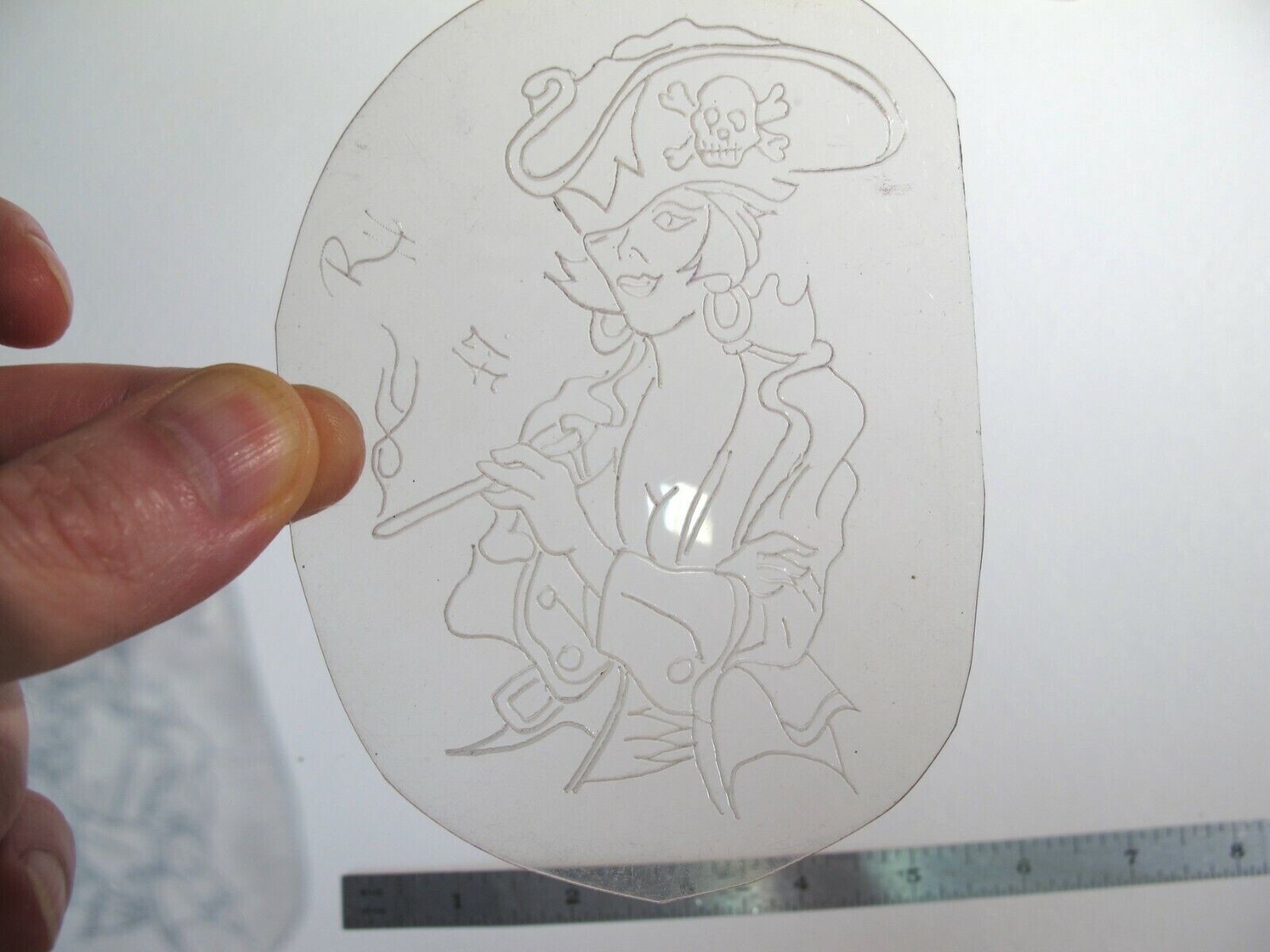как выглядит vtg 1960s 1970s Tattoo acetate stencil Pirate Girl Smoking signed WMN2 фото