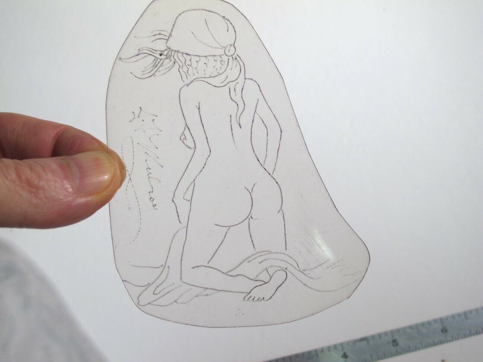 vtg 1960s 1970s Tattoo acetate stencil Biker Girl signed WMN2