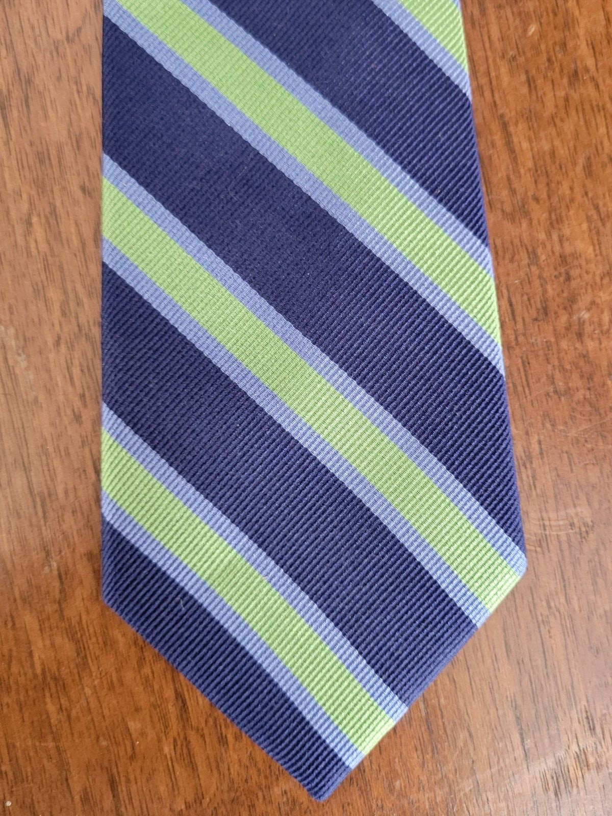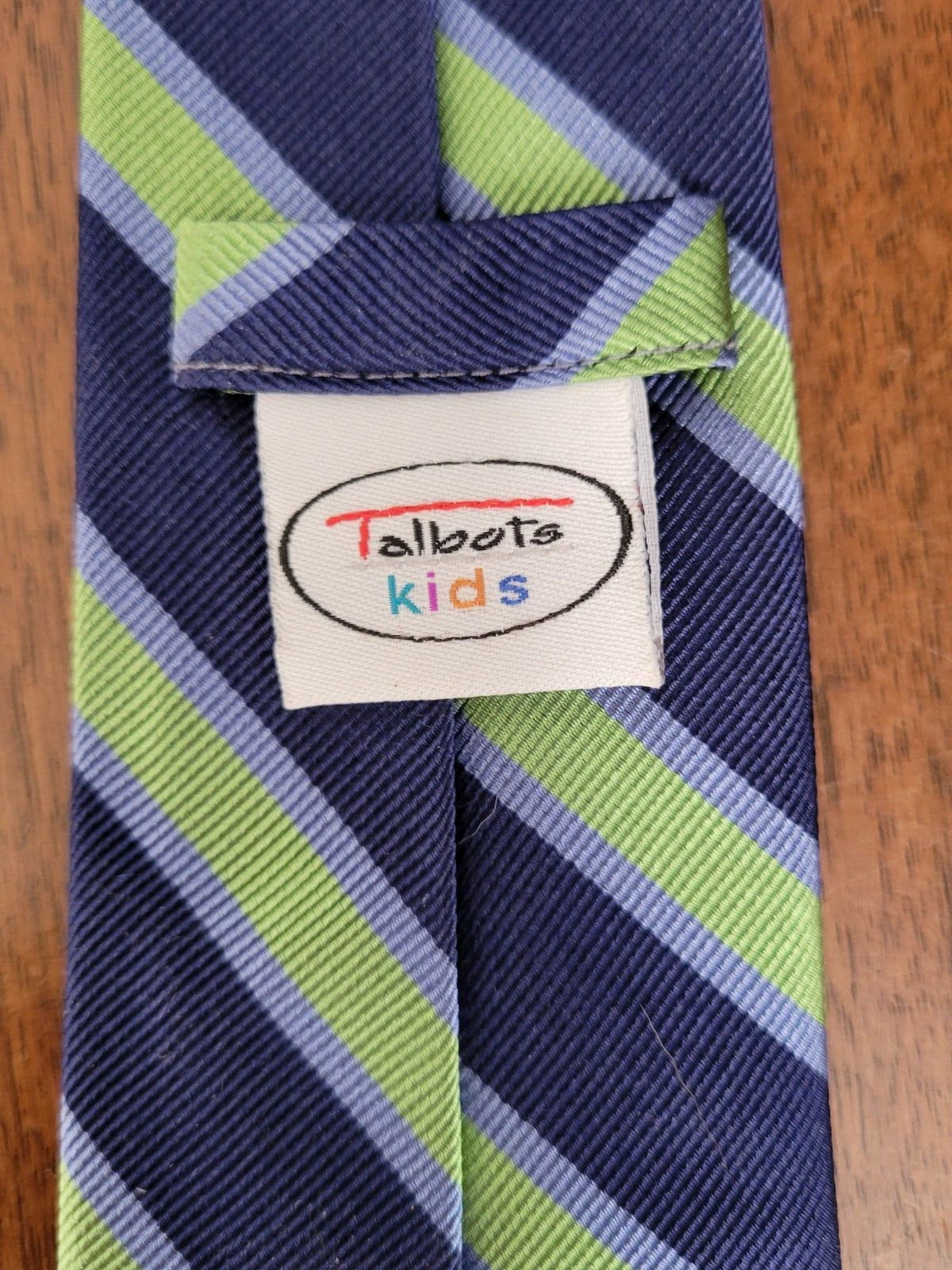 Lot of 2 Boys Talbots Kids Necktie Tie 100 Silk Blue Green Stripe Check EUC