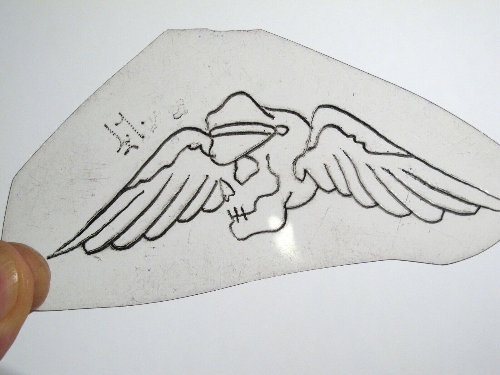 vtg 1960s Tattoo Flash acetate stencil Winged Cap Skull signed HAR2
