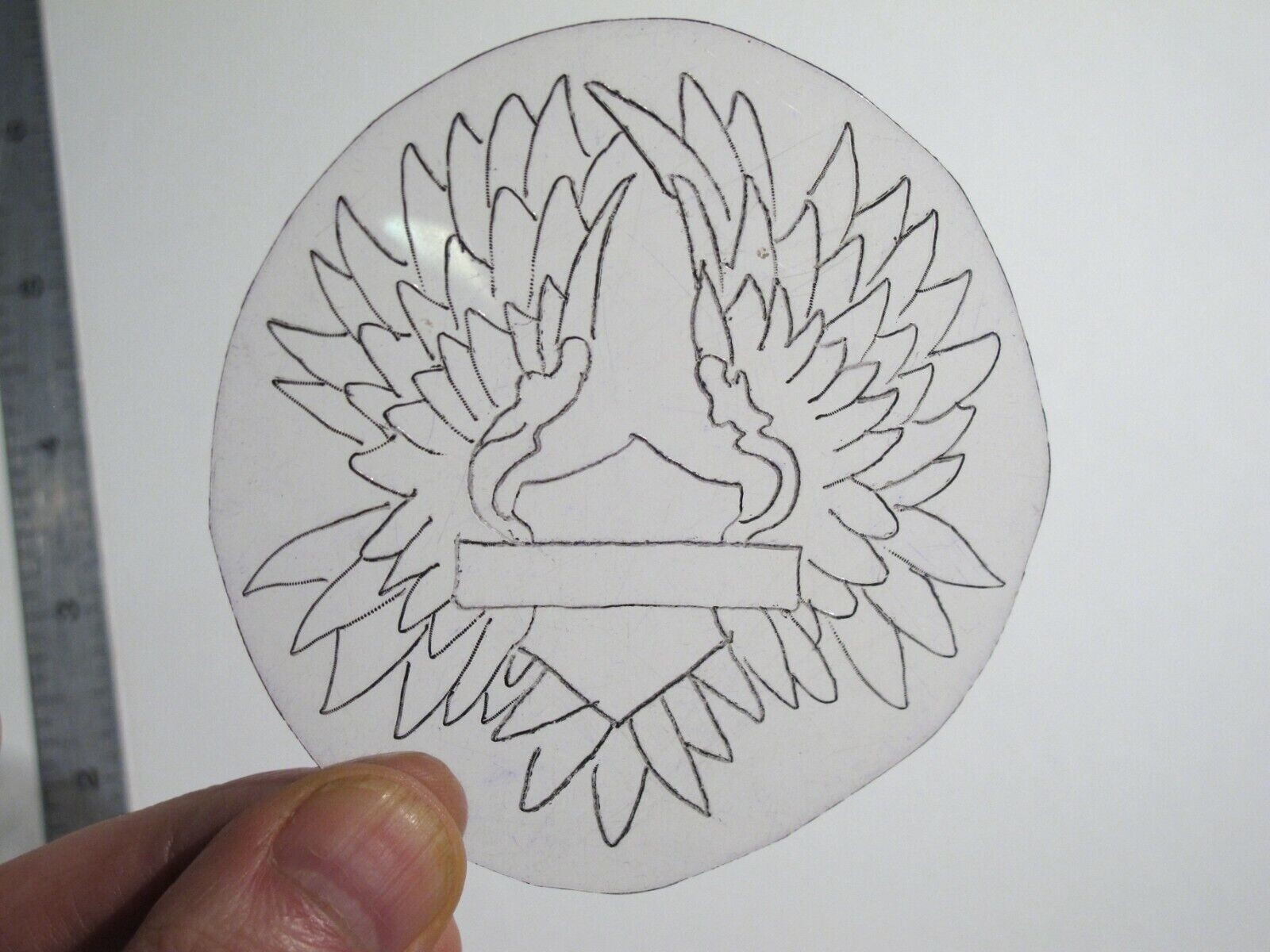 vtg 1960s Tattoo Flash acetate stencil Round Wings and Shield HAR2