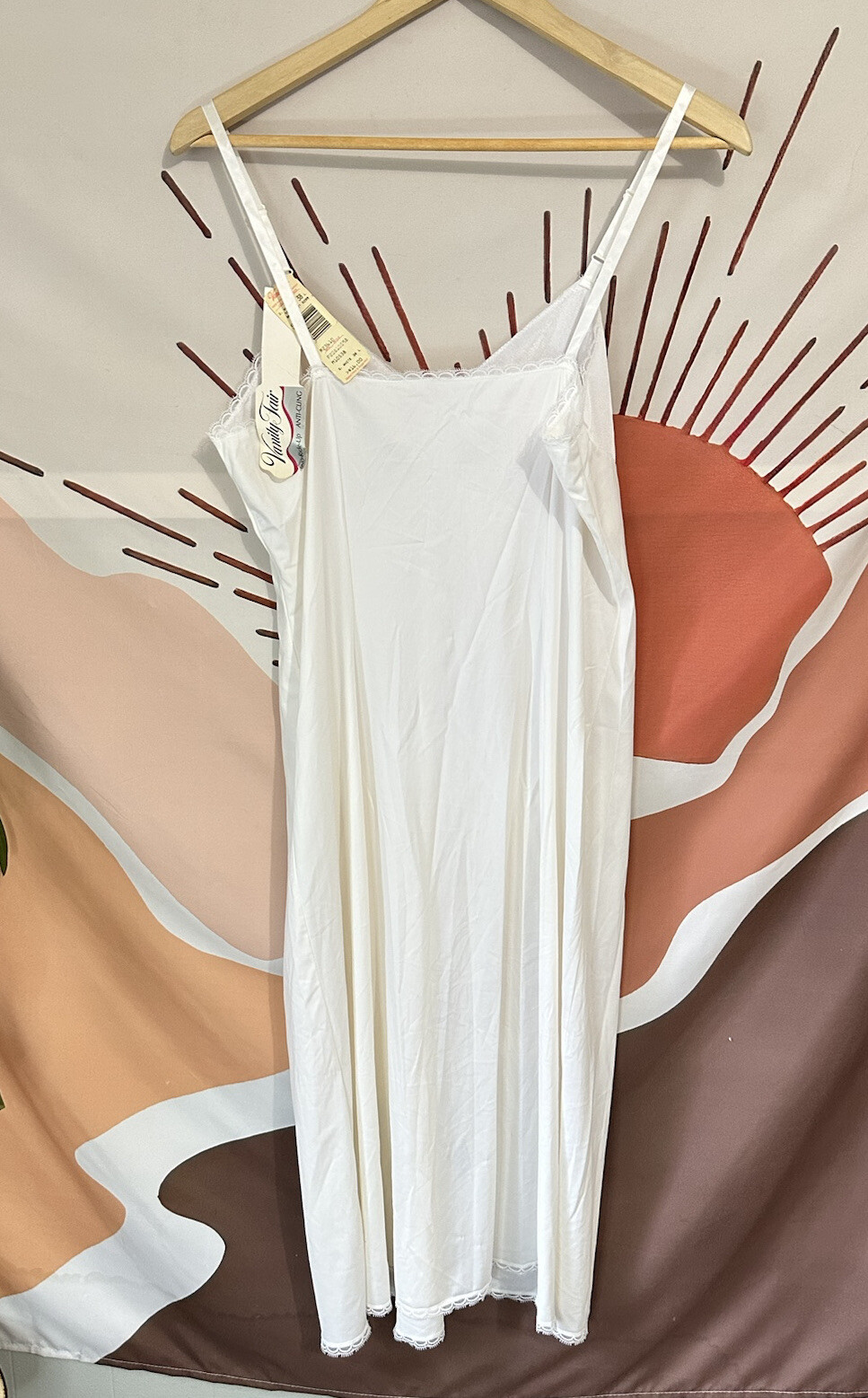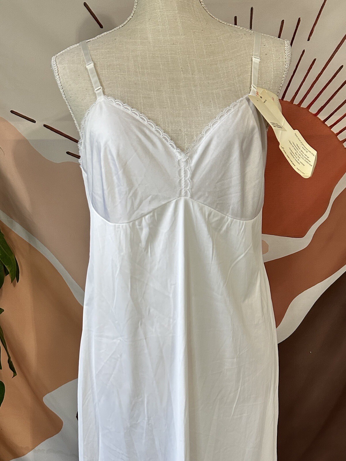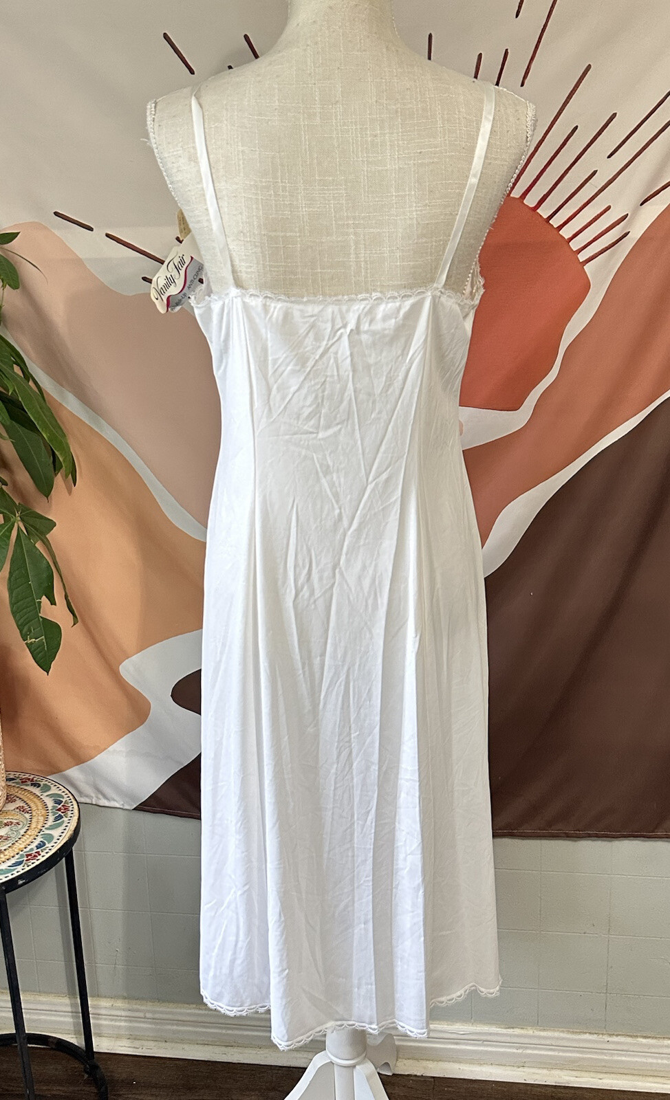 как выглядит Vanity Fair Full Slip Vintage White Sz 38 L Nylon Lace Made in USA NWT фото