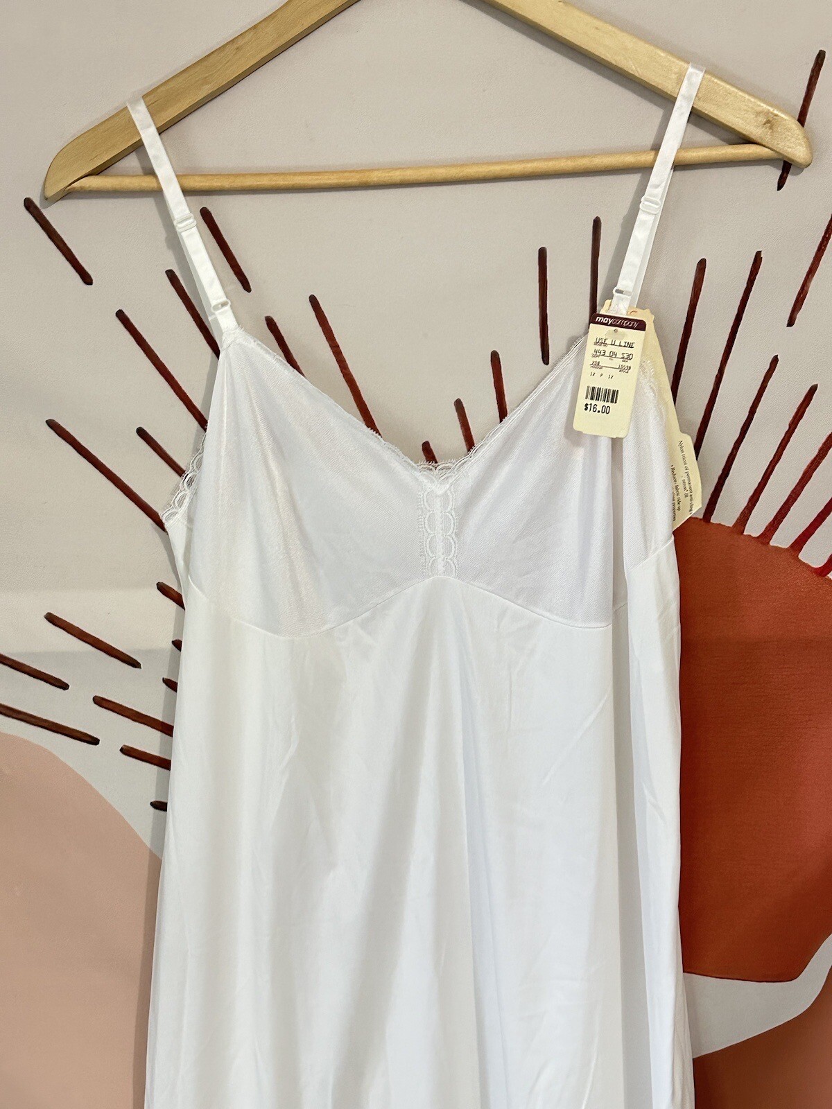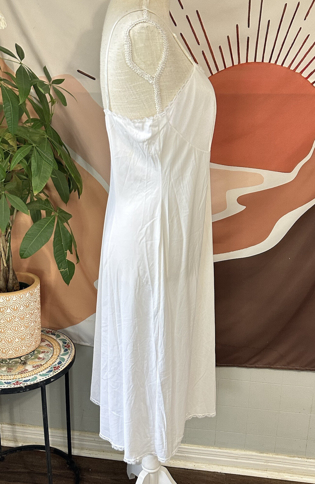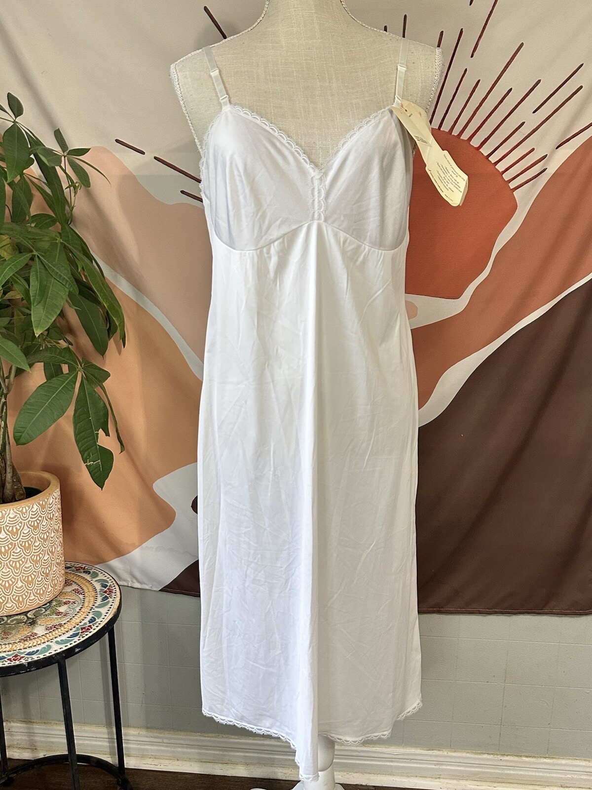 как выглядит Vanity Fair Full Slip Vintage White Sz 38 L Nylon Lace Made in USA NWT фото