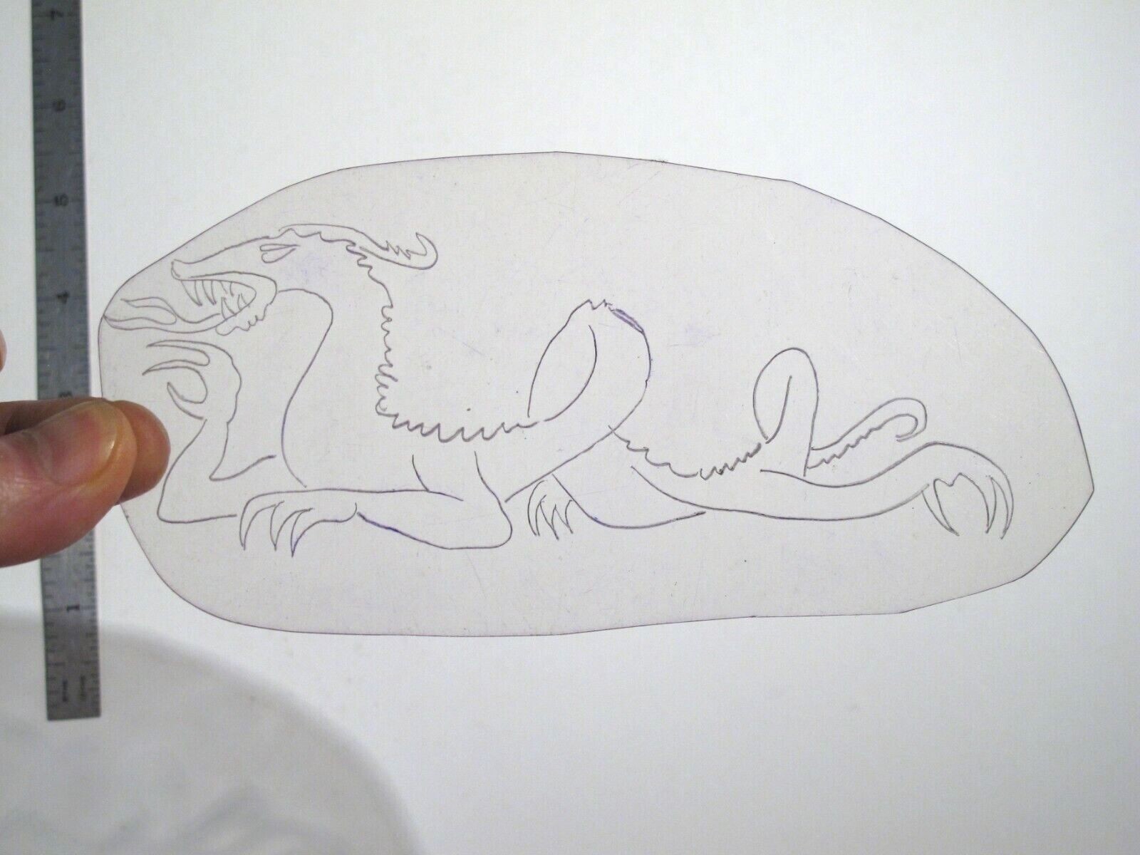 vtg 1960s 70s Tattoo Flash acetate stencil Profile Dragon DR1