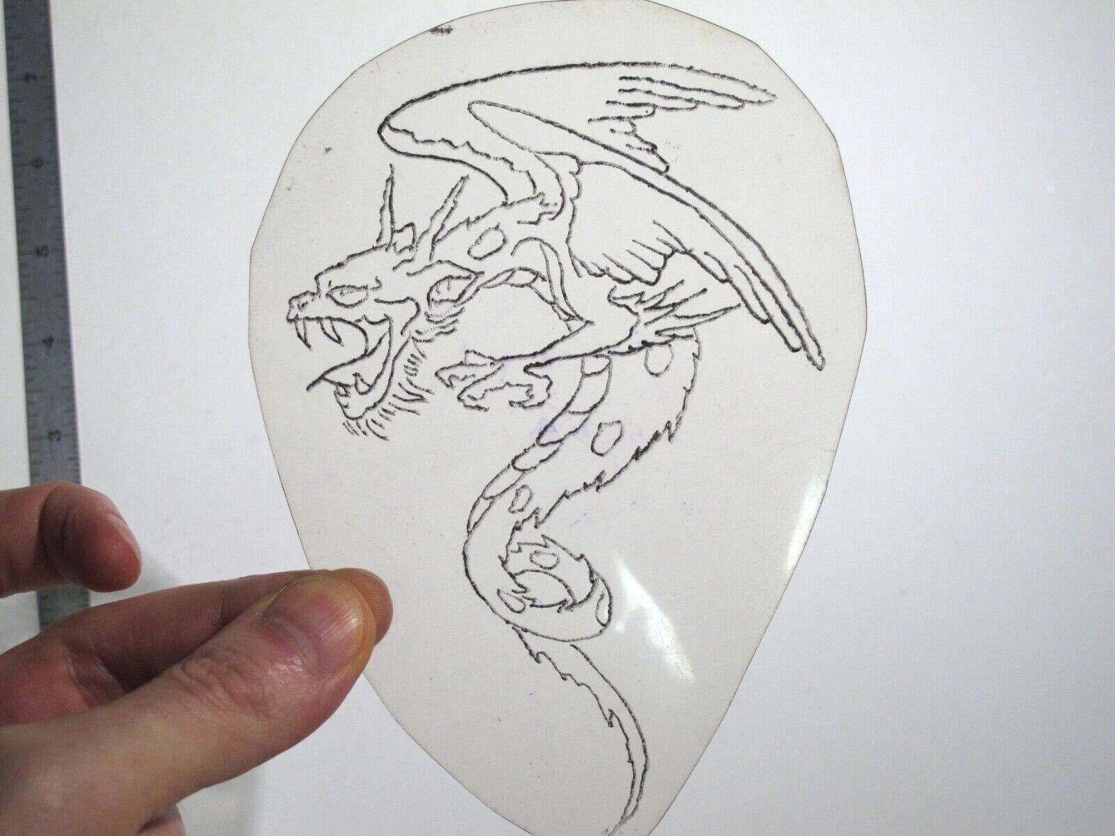vtg 1960s 70s Tattoo Flash acetate stencil Flying Dragon v2 DR1