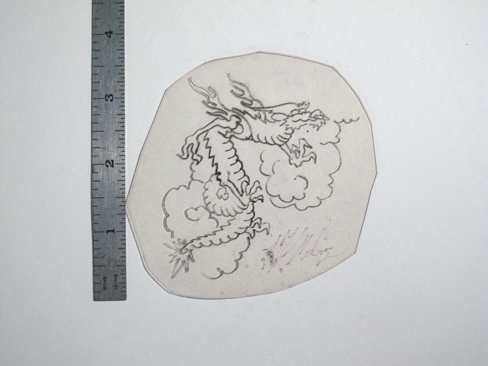 vtg 1960s 70s Tattoo Flash acetate stencil Asian Dragon in Clouds signed DR1