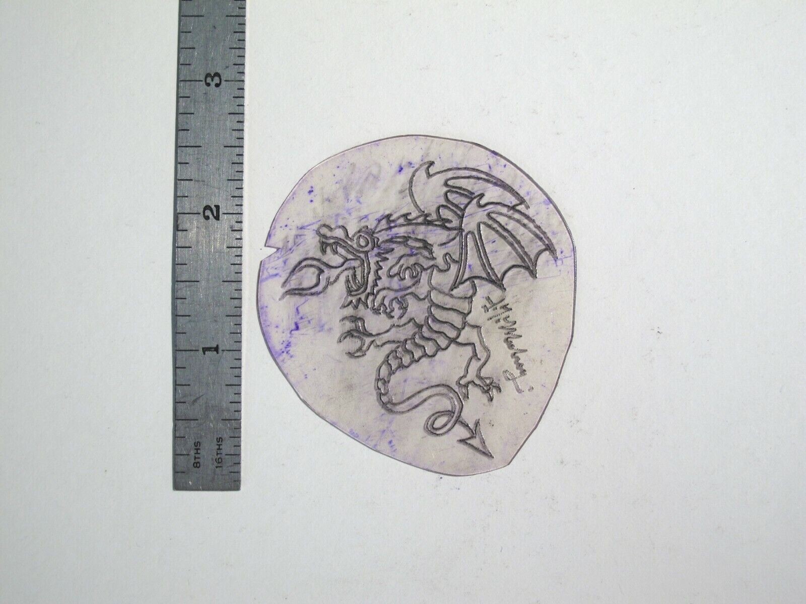 vtg 1960s 70s Tattoo Flash acetate stencil Fire Breathing Dragon sm. signed DR1