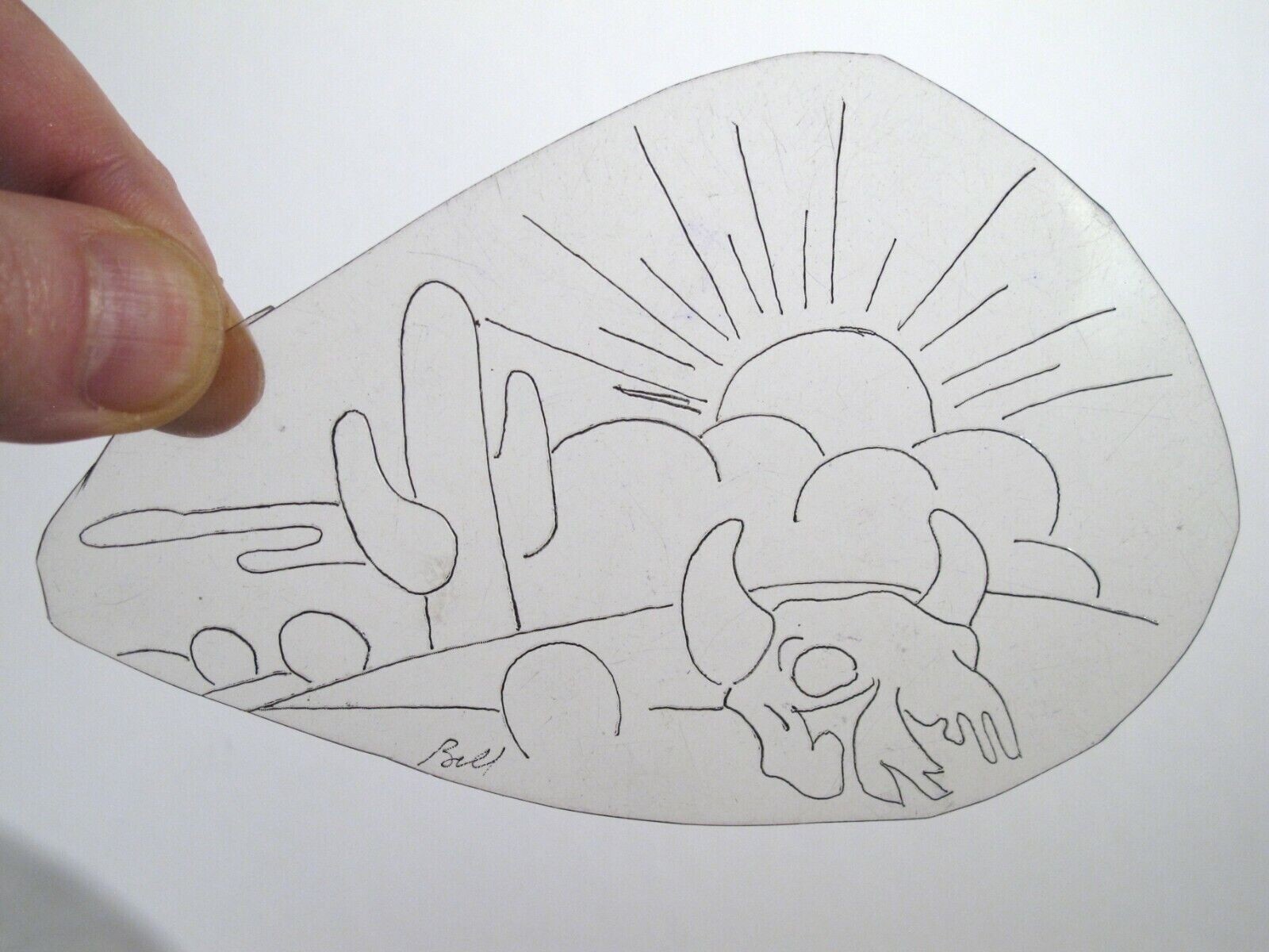 vtg 1960s Tattoo Flash acetate stencil Texas Desert Cowskull signed TX