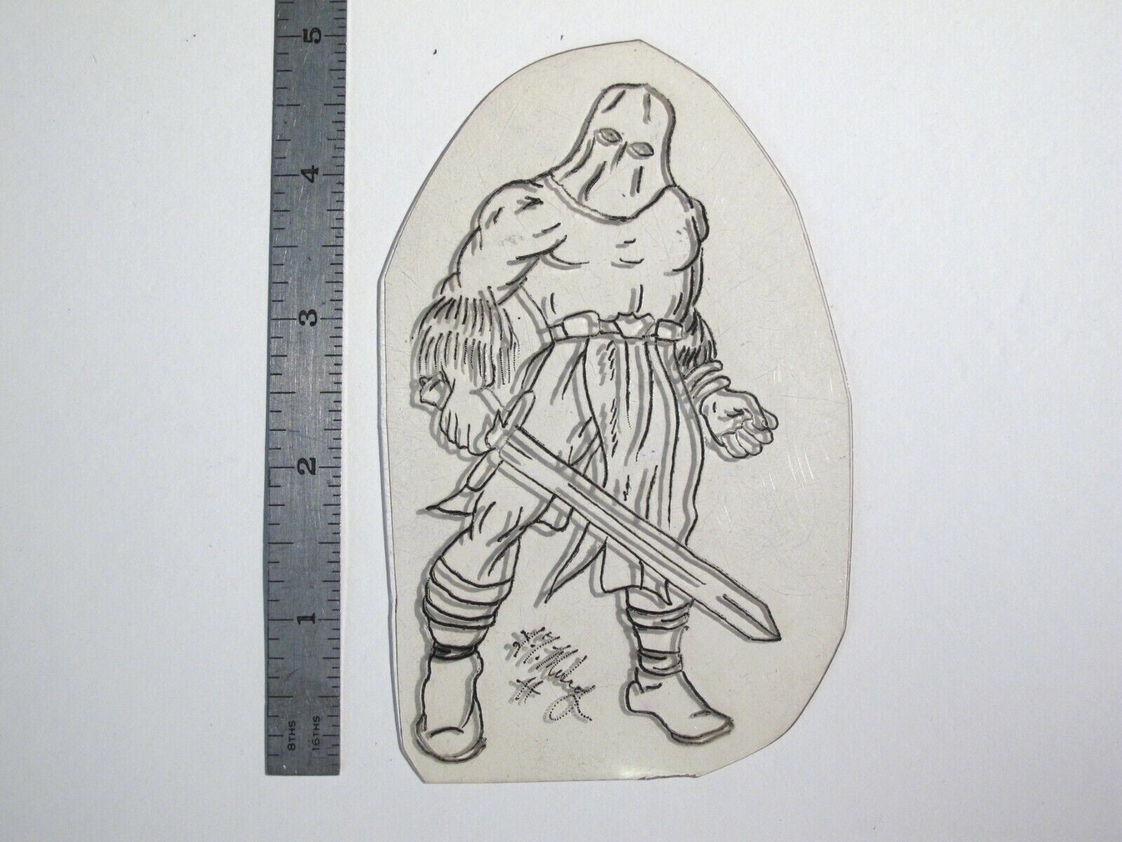vtg 1960s 70s Tattoo acetate stencil Hooded Barbarian Executioner signed REP1