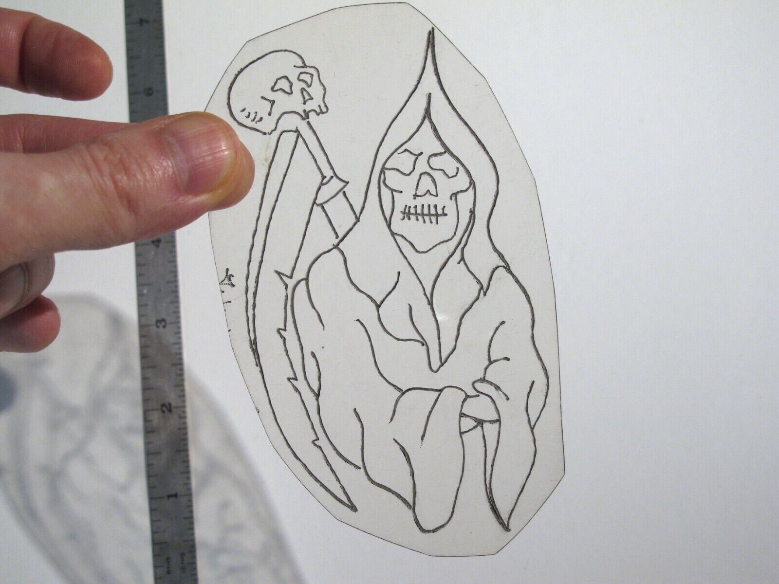 vtg 1960s 70s Tattoo Flash acetate stencil Half Reaper signed REP1