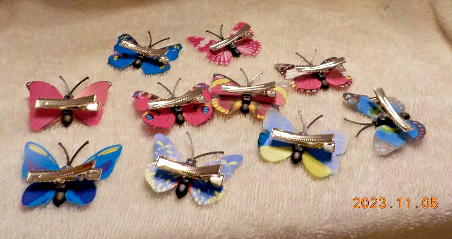 Lot of 9 pink and blue hair clip butterflies 1.75 x 1.25