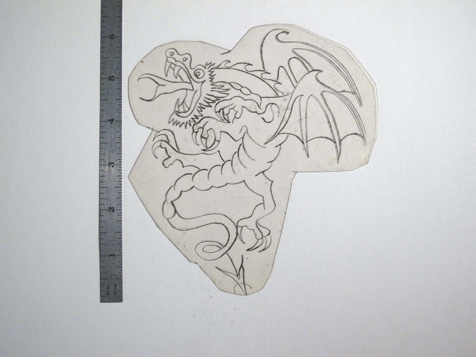 vtg 1960s Tattoo Flash acetate stencil Flying Fire Dragon large DR2