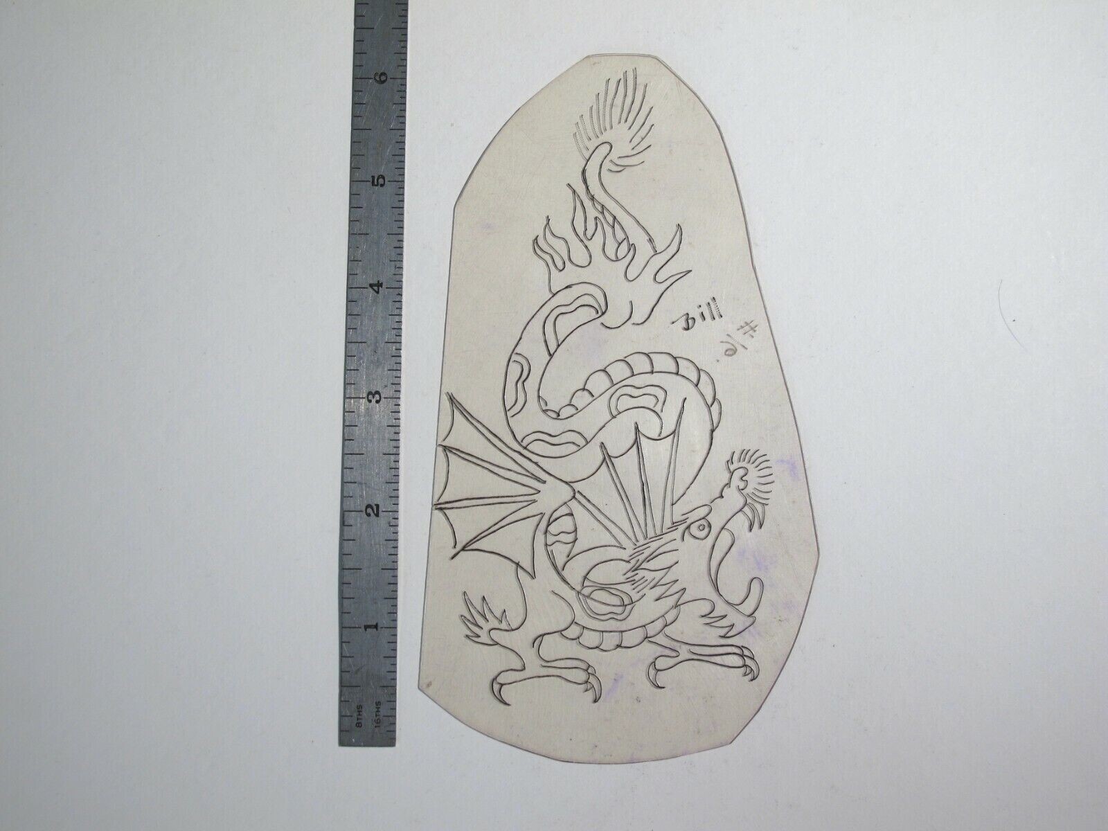 vtg 1960s Tattoo Flash acetate stencil Roaring Asian Dragon signed DR2