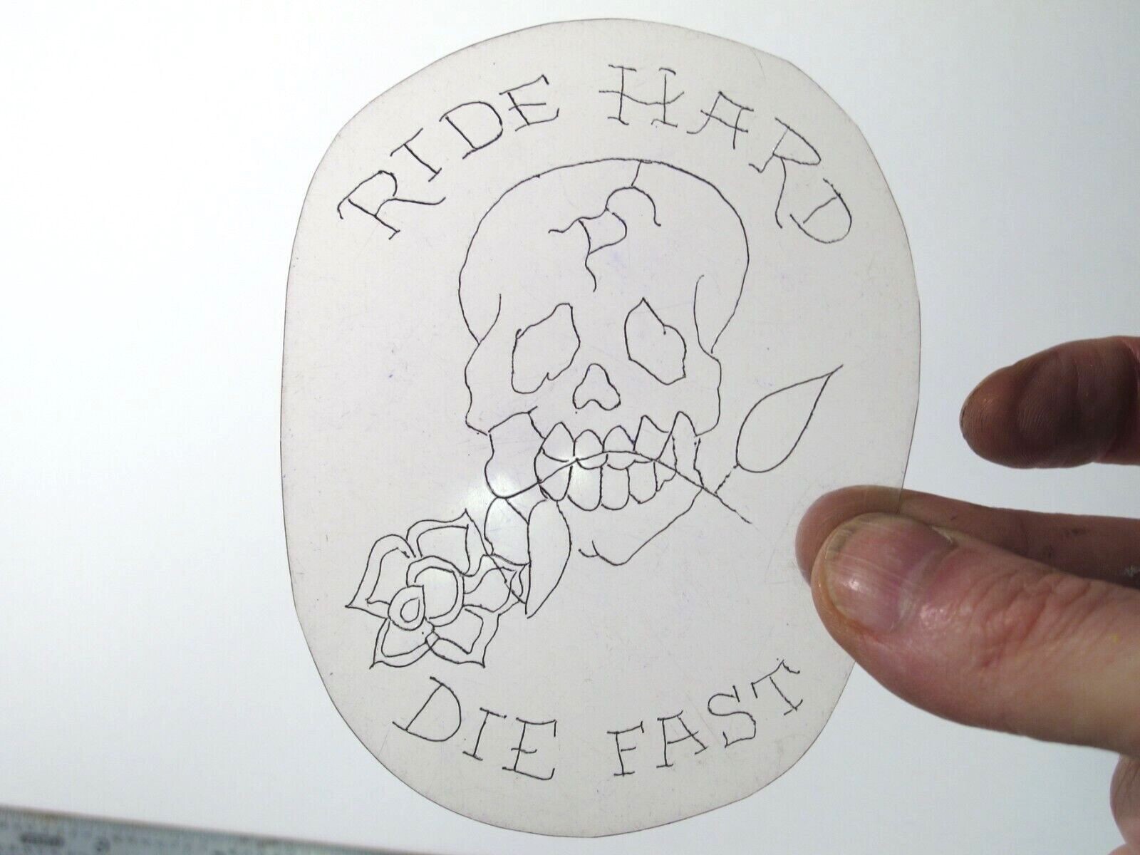 vtg 1960s 1970s Tattoo Flash acetate stencil Ride Hard Die Fast HAR1