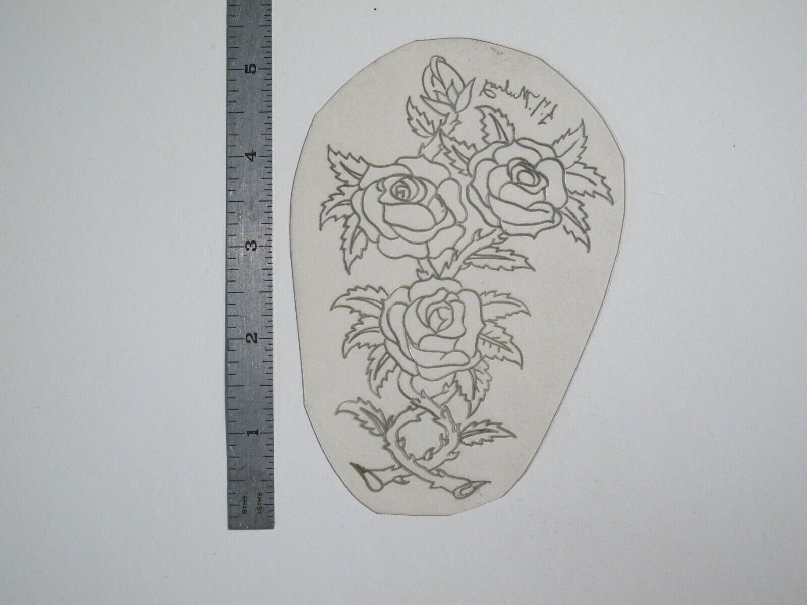 vtg 1960s 70s Tattoo Flash acetate stencil Four Intertwined Roses signed RS7