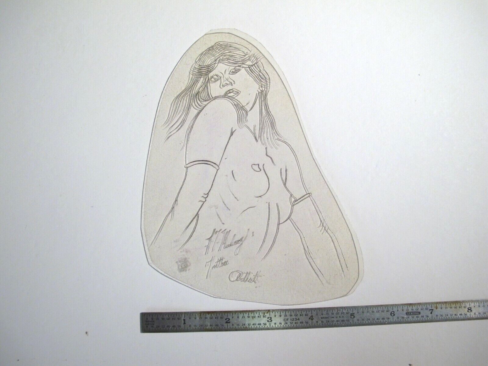 vtg 1960s 70s Tattoo Flash acetate stencil Stripper v1 signed WMN3
