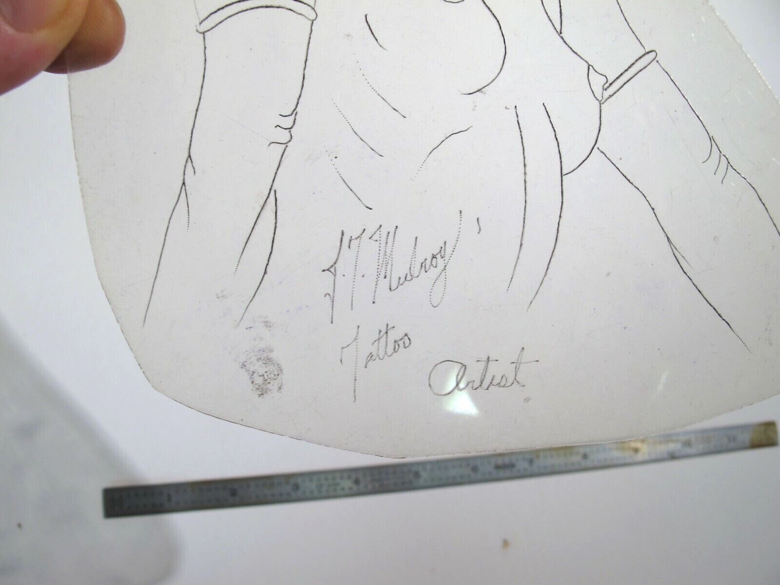 как выглядит vtg 1960s 70s Tattoo Flash acetate stencil Stripper v1 signed WMN3 фото