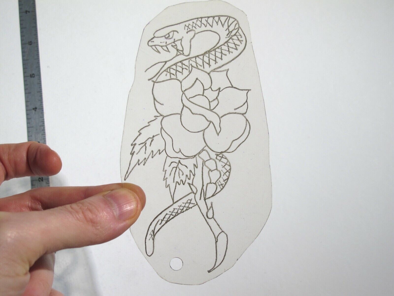 vtg 1960s 70s Tattoo Flash acetate stencil Snake and Rose SN3