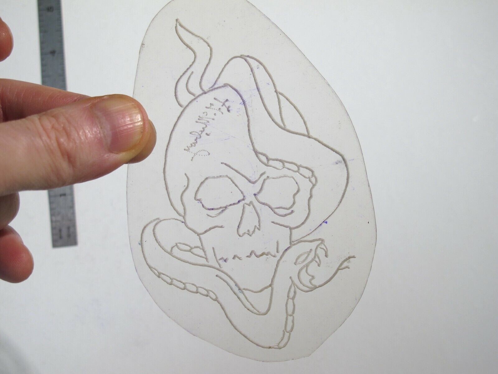 vtg 1960s 70s Tattoo Flash acetate stencil Snake Wrapping Around Skull signe SN3