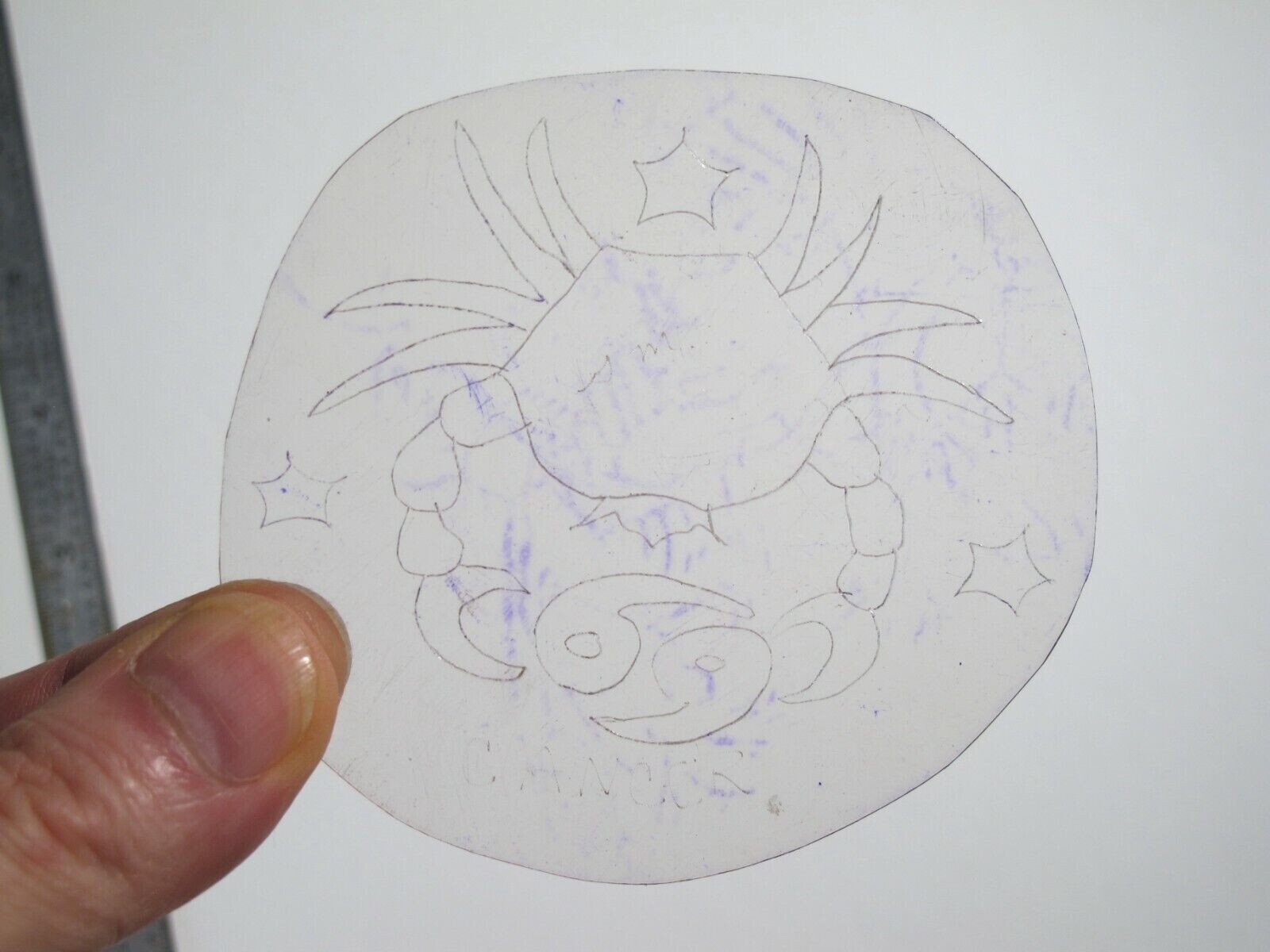 vtg 1960s 70s Tattoo Flash acetate stencil Cancer Symbol signed Zodiac ZOD1