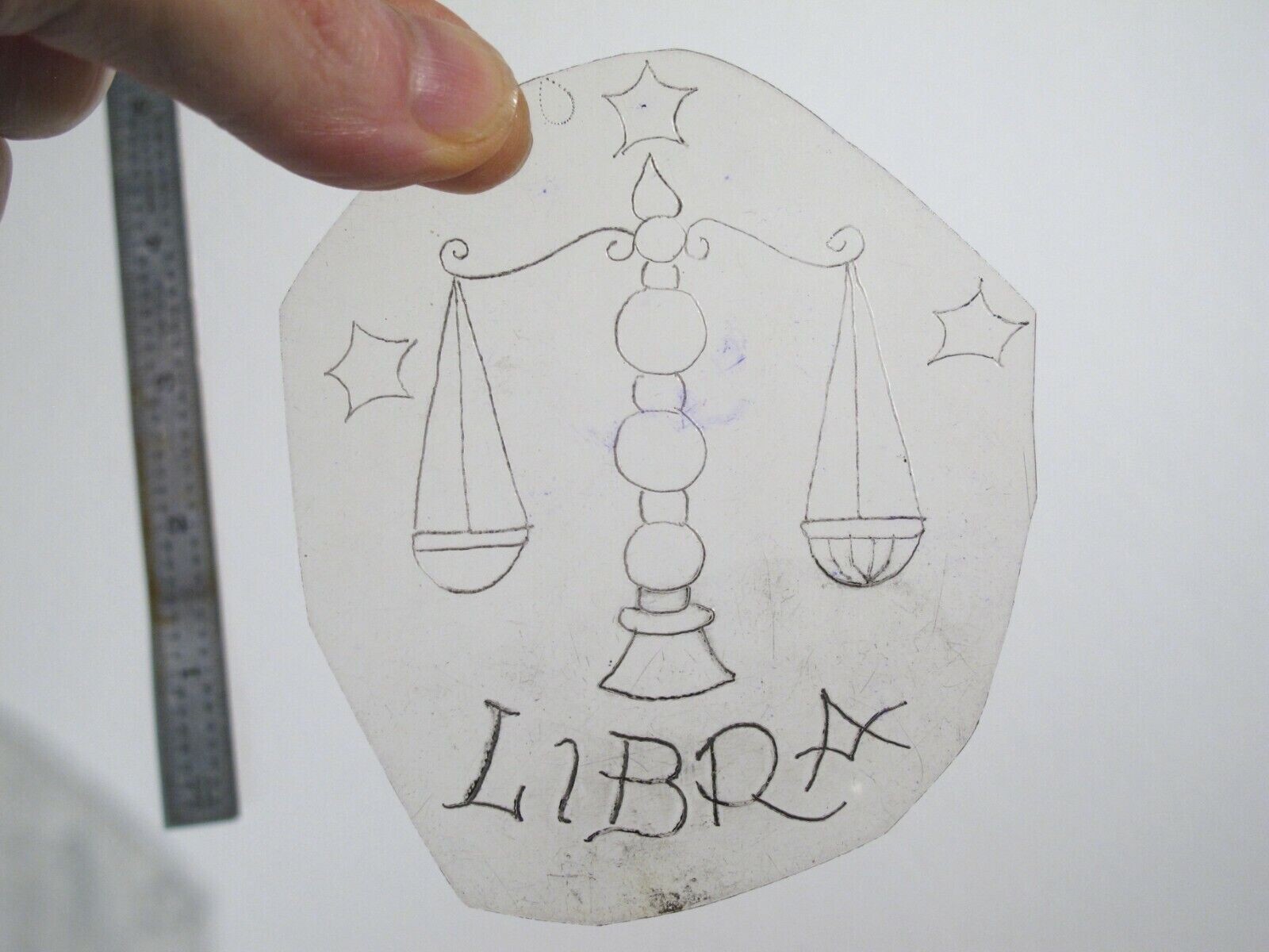 vtg 1960s 70s Tattoo Flash acetate stencil Libra Scales larger ZOD1