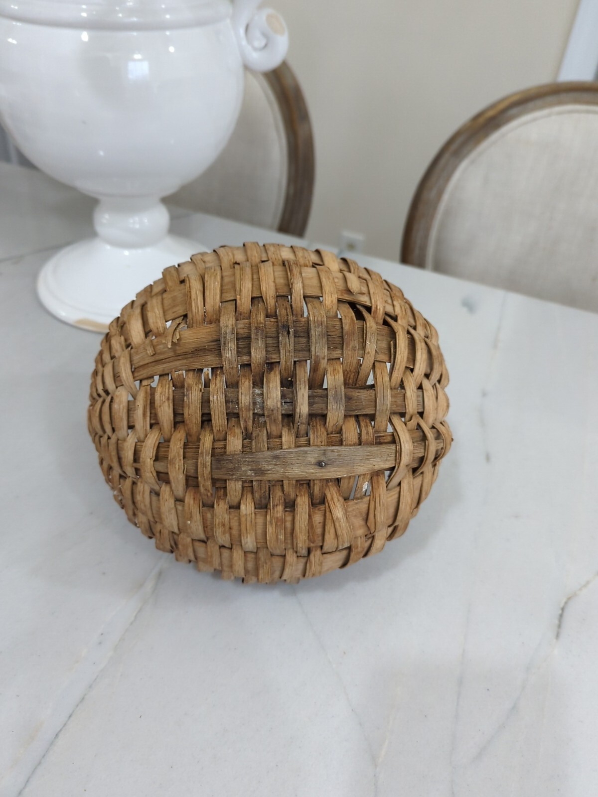 • Antique Primitive Hand Made Woven Split Oak Egg Gathering Basket Easter AS IS