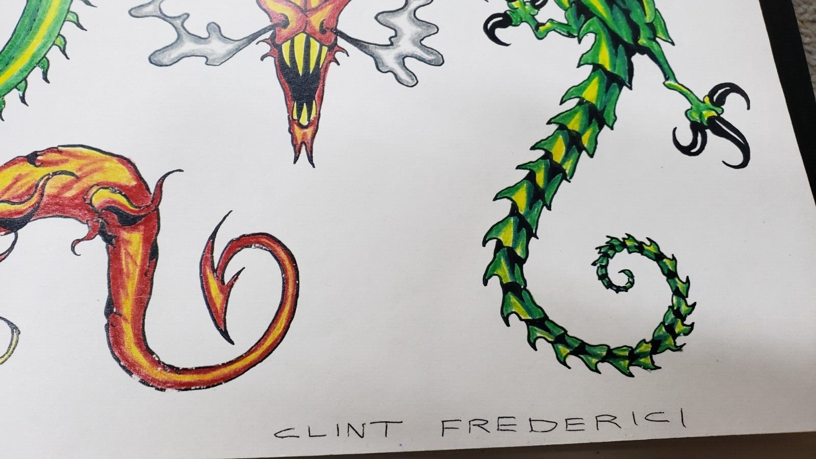 LOT of 2 VTG Tattoo Flash Wall Art Sheets Jeff Bartels Frederici Dragons Color
