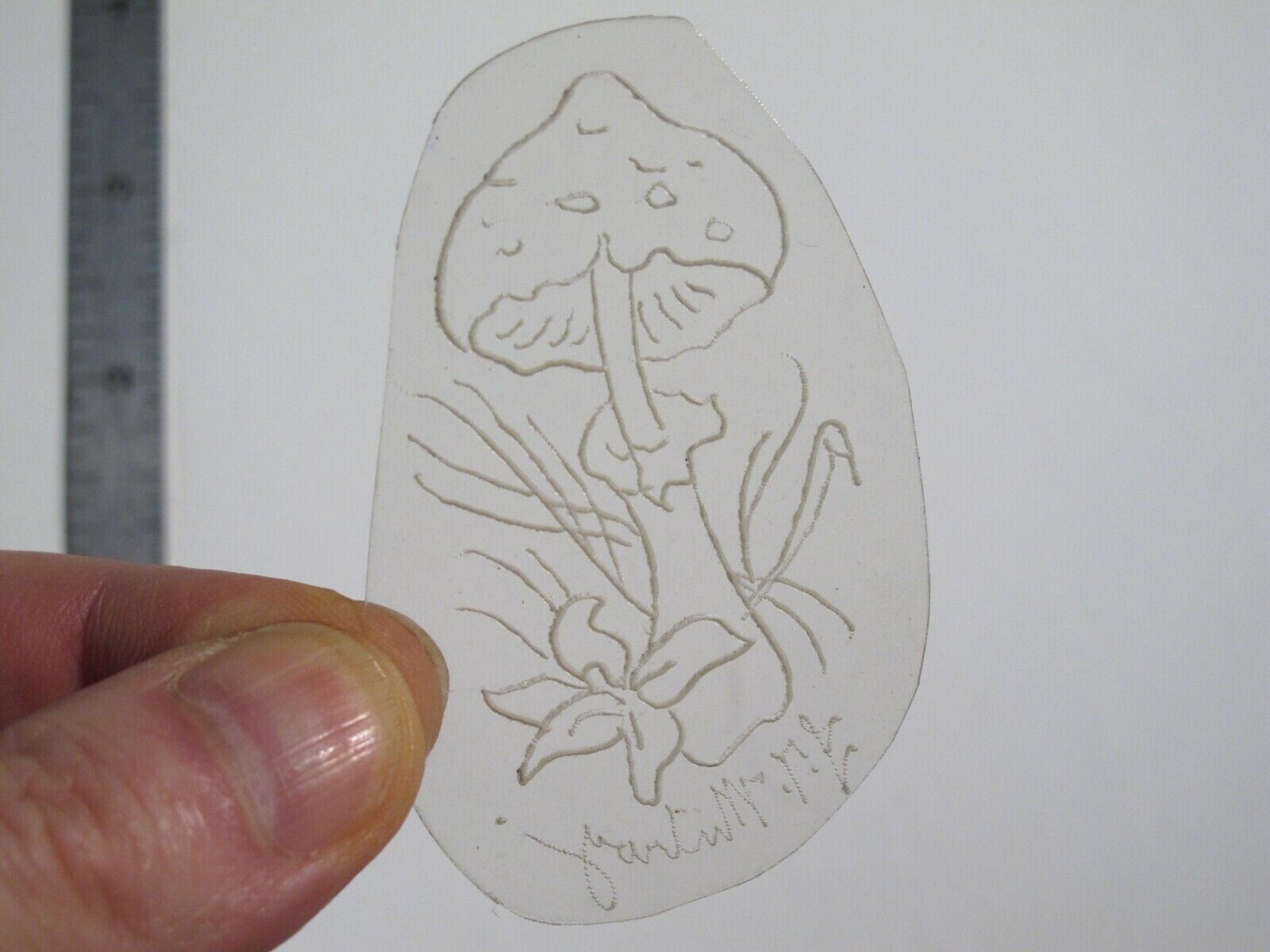vtg 1960s 70s Tattoo Flash acetate stencil Toadstool Flower Grass signed SHR1