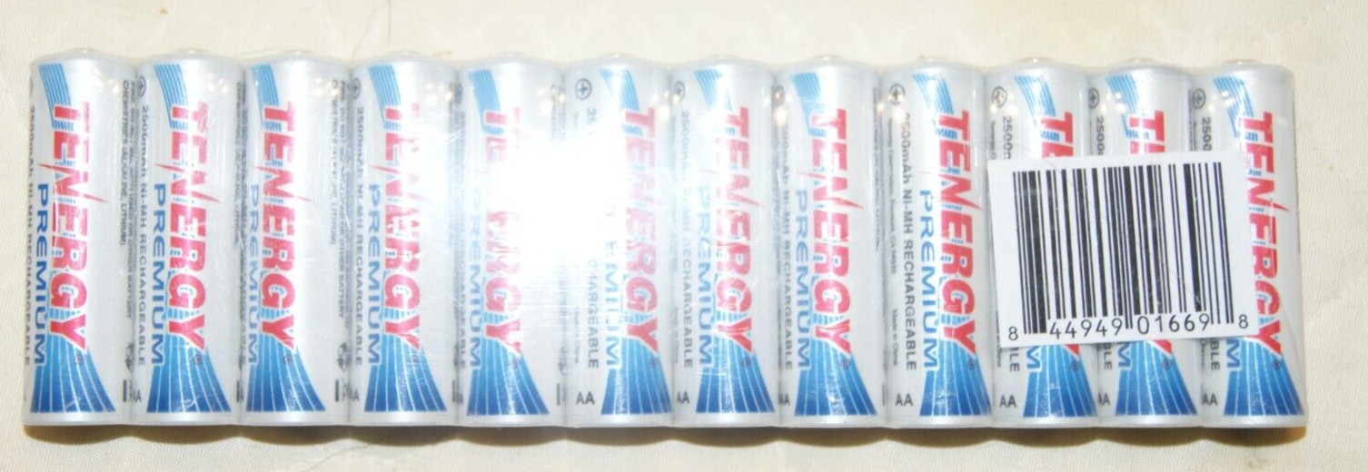 TENERGY PACK OF 12 PREMIUM 2500mAH-NI-MH ALKALINE RECHARGEBLE LITHUM BATTERIES