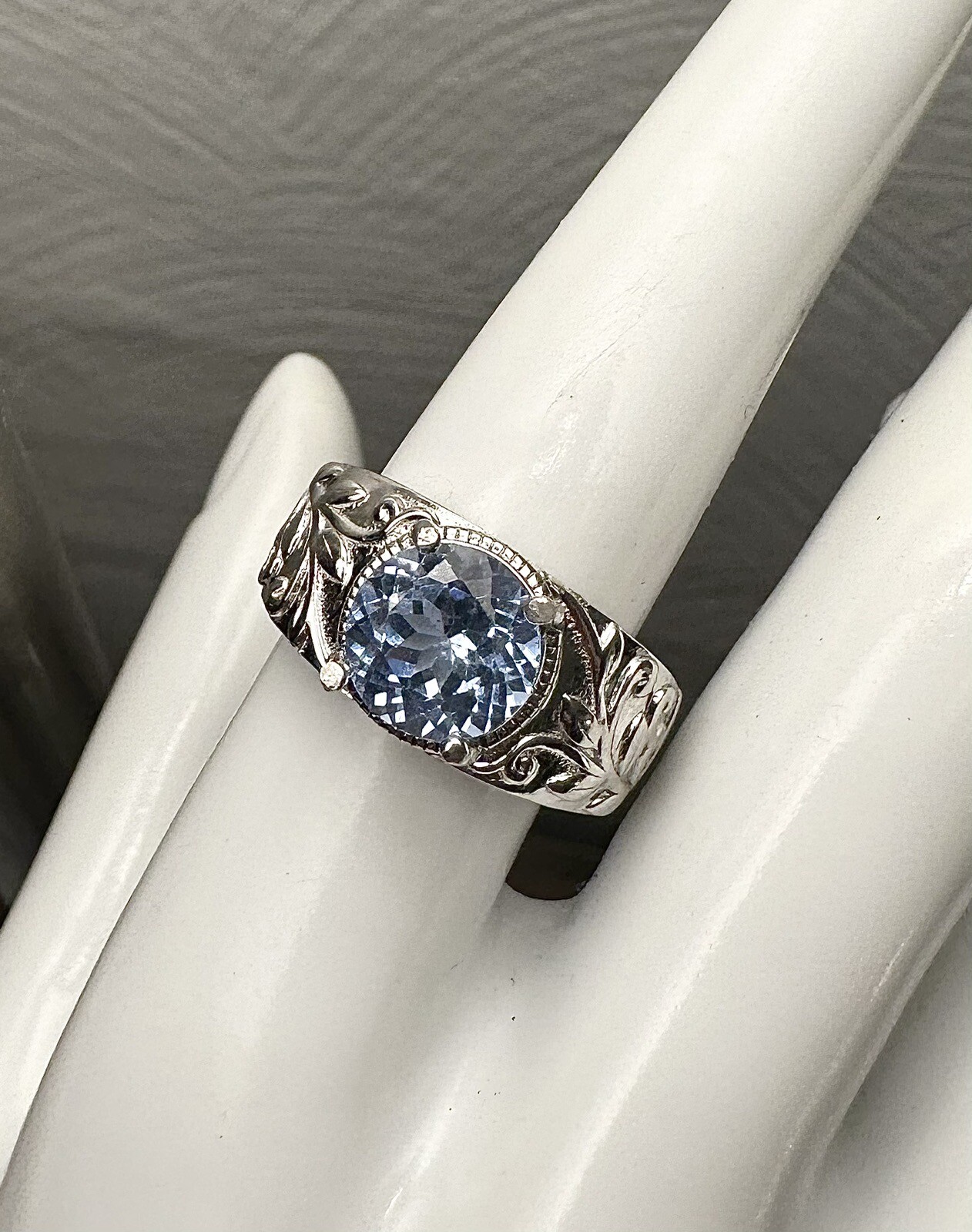 Beautiful Unisex Light Blue Spinel Lab Created 925 Sterling Silver Ring Sz 7.75