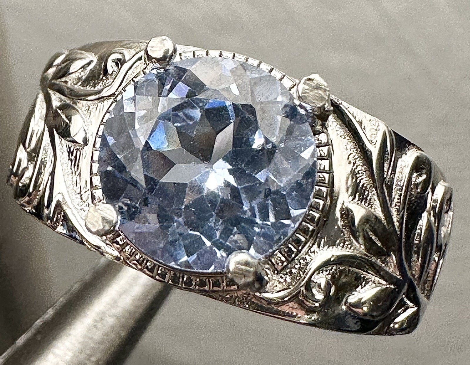 как выглядит Beautiful Unisex Light Blue Spinel Lab Created 925 Sterling Silver Ring Sz 7.75 фото